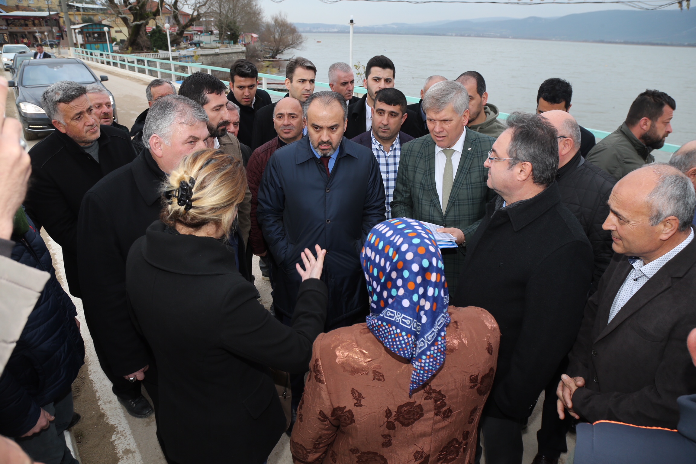 Büyükşehir Belediye Başkanı Alinur Aktaş, Bursa’nın çok önemli tarihi mekanlarının bulunduğunu belirterek, bunlardan birinin de Gölyazı olduğunu ifade etti. Gölyazı’nın cennetten bir köşe misali kış ve yaz ayrı bir güzelliğinin olduğunu vurgulayan Başkan Aktaş, “Göreve başladığımızdan bu yana Bursa’nın atıl kalmış belirli noktalarıyla ilgili çalışmalar gerçekleştiriyor, tespitler yapıyoruz. Bu tespitleri daha sonra hizmete almanın derdindeyiz. Gölyazı da gündemimizde olan bir konu. Daha önce burasının alt yapı ve kanalizasyon düzenlemeleri için yaklaşık 9 milyon TL’lik bir harcama yapılmıştı. Bunun yanında zemin düzenlemeleri ve mahallenin ihtiyaçlarıyla alakalı ilçe başkanımızdan, muhtarımızdan ve mahalle temsilcimizden gerekli bilgileri aldık” dedi.
