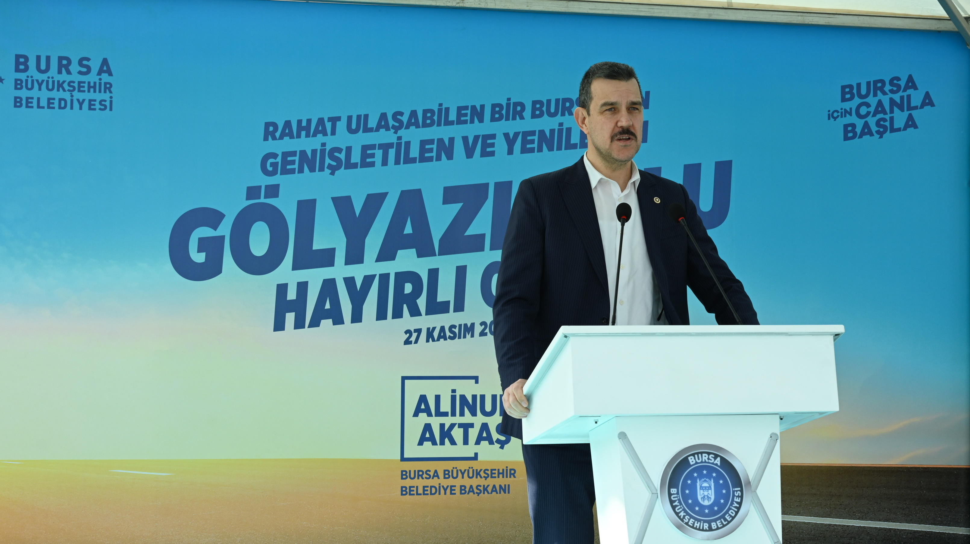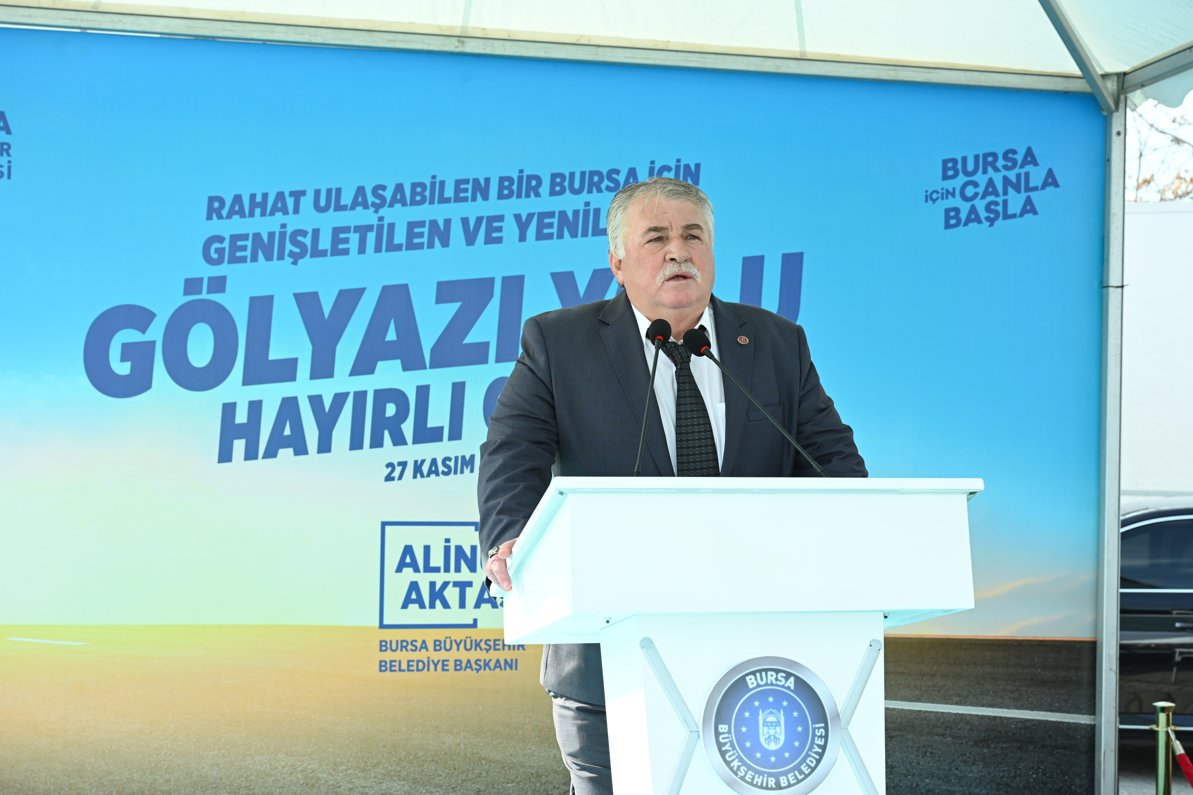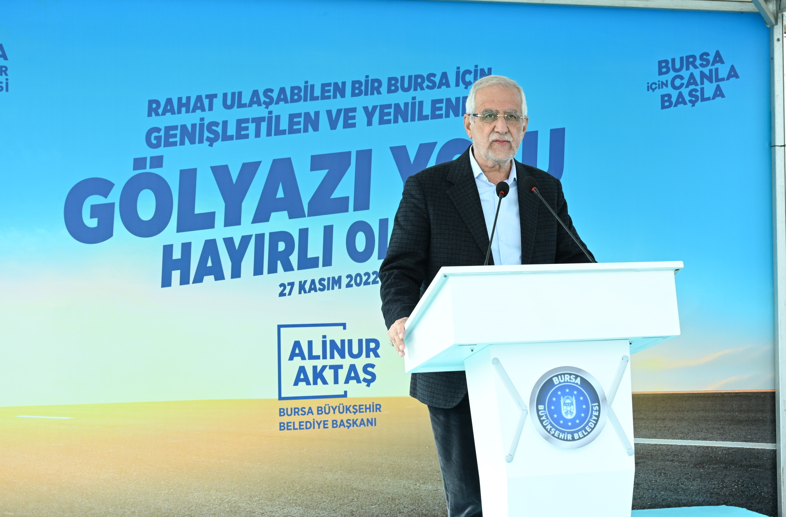 Yolun açılışı dolayısıyla düzenlenen törende konuşan Bursa Büyükşehir Belediye Başkanı Alinur Aktaş, söz verdikleri bir konuyu daha yerine getirmenin mutluluğunu yaşadıklarını söyledi. Gölyazı’nın tarihe ve insanlığa mal olmuş ender bölgelerden biri olduğunu belirten Başkan Alinur Aktaş, Uluabat Gölü’nün zengin tür çeşitliliğine sahip olduğunun altını çizdi. Önemli bir sulak alan olması sebebiyle Türkiye’de koruma altına alınan 12 ramsar alanından birisi olduğunu ifade eden Başkan Aktaş, Uluabat’ın Gölyazı gibi bir değere hayat verdiğini dile getirdi. Gölyazı’nın tarih ve doğanın iç içe geçtiği eşsiz yerlerden biri olduğunu anlatan Başkan Aktaş, “Tümüyle sit alanı olan bölge, tarihi mirasın önemli izlerini taşıyor. Büyükşehir Belediyesi olarak Gölyazı’nın cazibesini artırmak için elimizden gelen çalışmaları yapıyoruz. Biz icraat yapıyoruz, birileri de bizim yaptığımız icraatların yanına kamyonlarını bırakıp görüntü veriyorlar. Bizler ekip olarak taş taş koymanın hesabı içerisindeyiz. Adanın tamamında daha önce yaptığımız çalışmalar kapsamında granit, parke, bordür döşemeleri gerçekleştirilmişti. Bu çalışmalar toplamda 47 bin metrekarelik alanda yapıldı. İlave olarak meydan çevrelerine ferfoje korkuluk imalatları, kent mobilyaları gibi düzenlemeler yaptık. Gölyazı cadde ve sokak zemin düzenleme uygulama işi kapsamında, Cumhuriyet Caddesi üzerinden başlayarak mezarlık alanına kadar 3 bin 330 metrekare mikrogranüllü parke taşı ile kaplama ve bordür imalatları yapıldı” dedi.