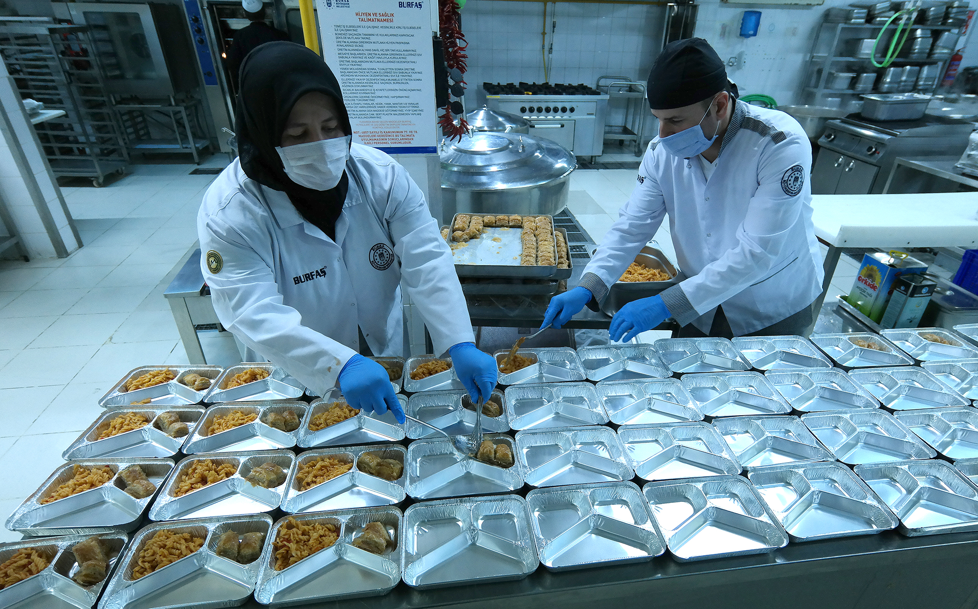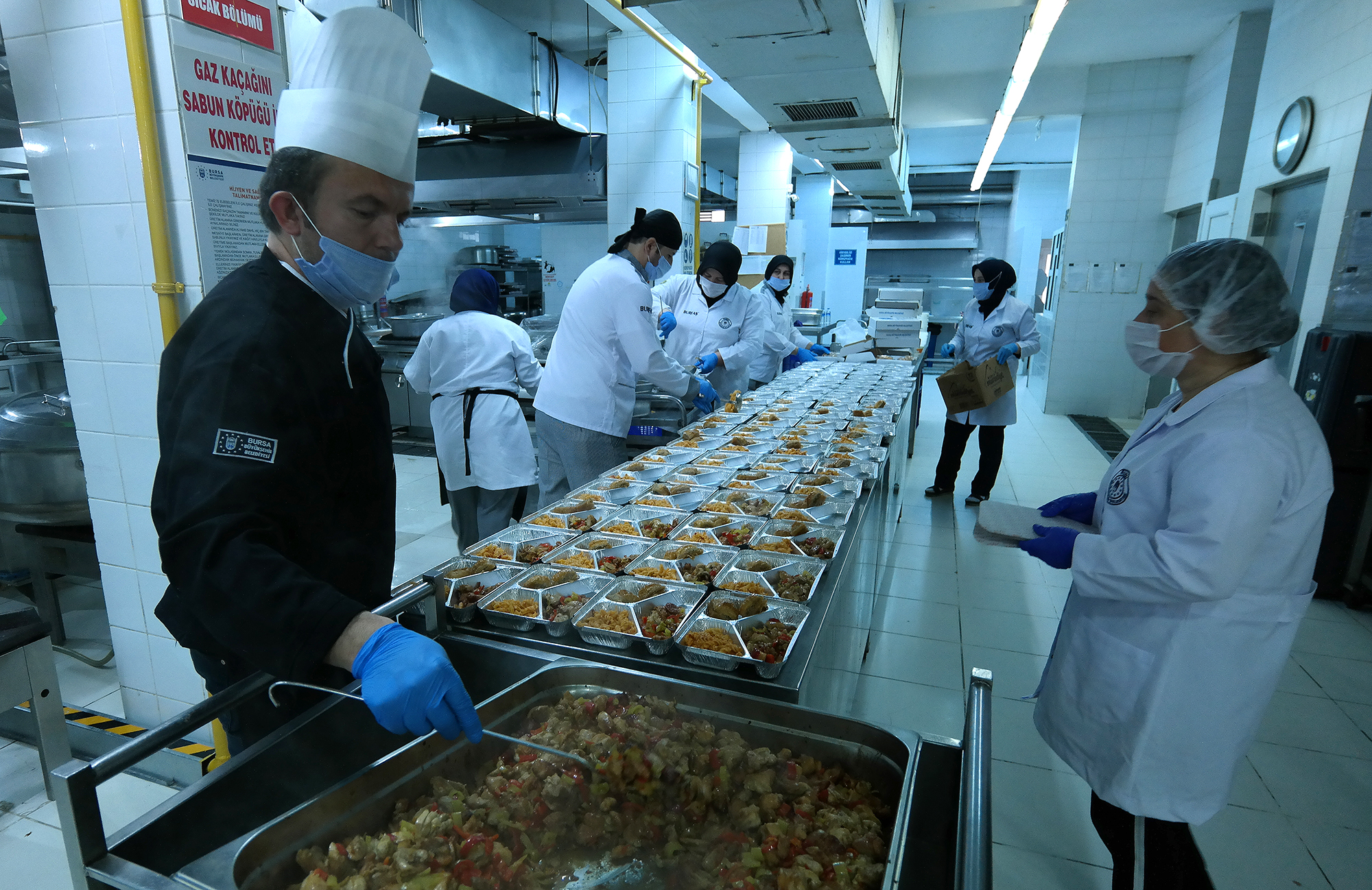 BURSA - Bursa Büyükşehir Belediyesi, ‘Covid 19’ salgını yüzünden sokağa çıkma kısıtlaması olan yaşlılar, risk grubundaki kronik hastalığı bulunanlar, engelliler ve ihtiyaç sahiplerini her gün 2 öğün sıcak yemekle buluşturuyor. Bizzat Büyükşehir personeli tarafından özenle hazırlanan yemekler, vatandaşların evlerine kadar götürülüyor.