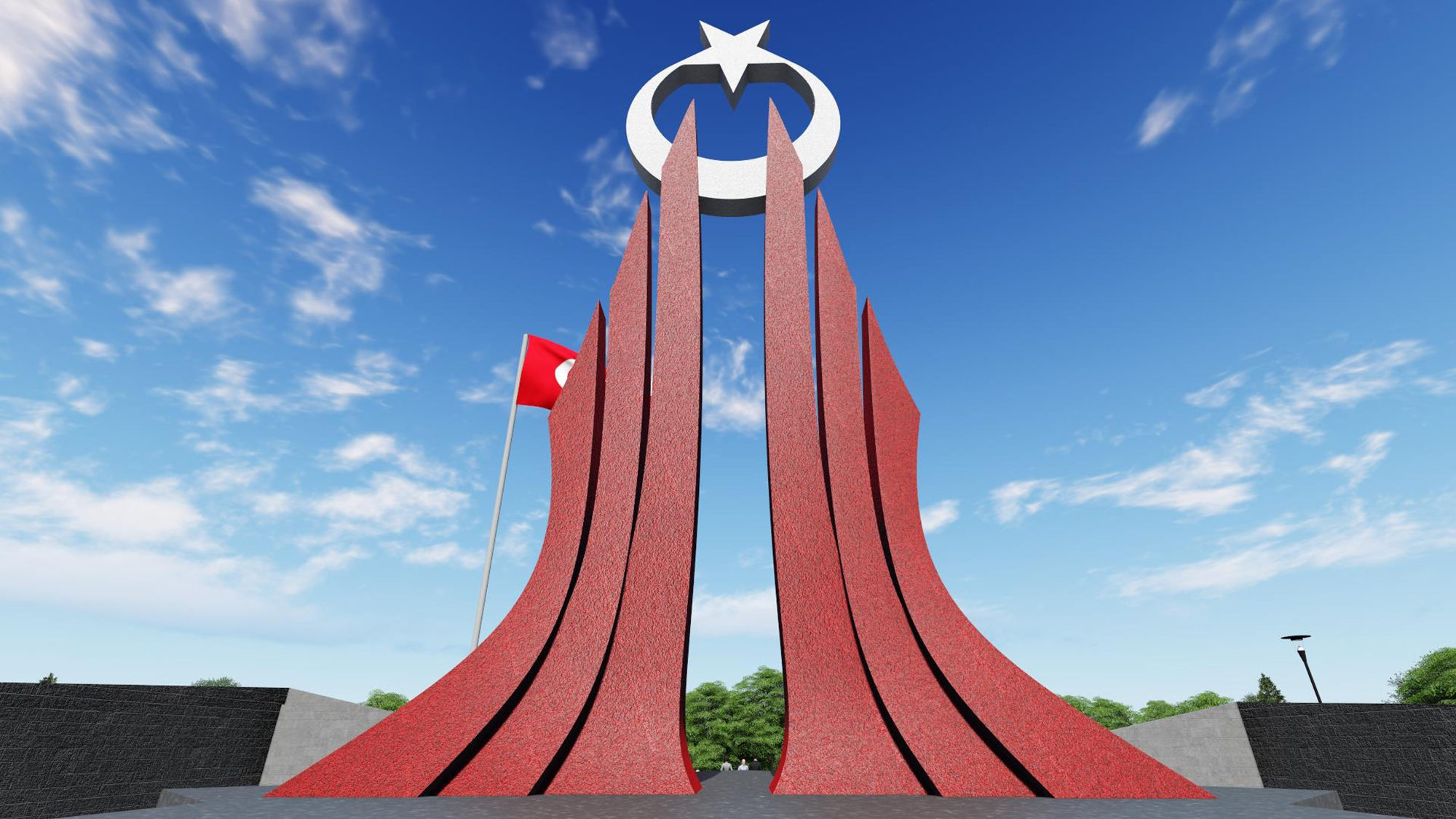 Projenin en özellikli yapılarından biri ise 12 metre 28 santim yüksekliğe sahip şehitlik anıtı olacak. 120 metrekarelik alan üzerine konuşlandırılacak anıtta tema olarak şehitlere verilen önem işlendi. Sağ ve sol yanında 3’lü formlardan oluşan 2 ana ayak sayesinde ayakta duran anıtın en üst kısmında ise bağımsızlığın simgesi olan dev bir ay yıldız bulunacak. Dernek birimleri, müze, sosyal alanları ile birlikte tören alanı, müze tüneli ve çevre düzenlemeleriyle hem şehitlere vefa borcu yerine getirilecek hem de Bursa görkemli bir meydana kavuşmuş olacak.
