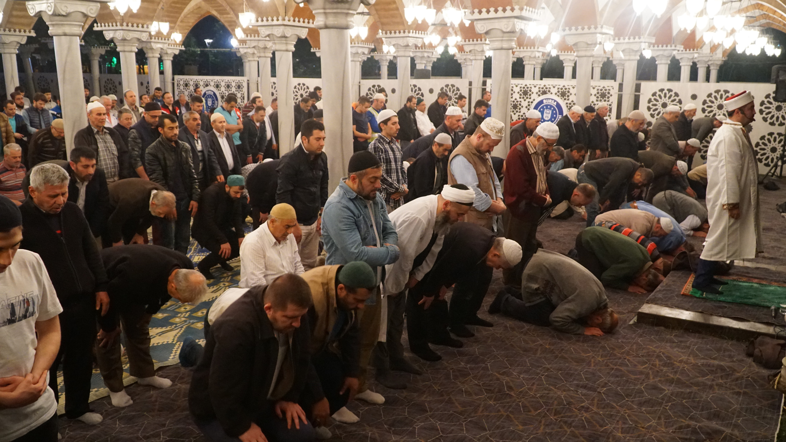 Bursa Büyükşehir Belediyesi Kültür Turizm Daire Başkanlığı ve Kültür A.Ş. tarafından düzenlenen ‘Şehr-i Ramazan’ etkinlikleri, 11 ayın sultanı Ramazan akşamlarının keyfine keyif katmaya devam ediyor. Merinos Parkı’nda gök kubbeli açık namazgâhta, teravih namazını bu kez Bursa Mihraplı Camii İmam Hatibi Musa Coşkun kıldırdı. İlahiler ve salavatlar ile son bulan teravih namazının ardından alanda kurulan sahneye önce ‘Kavuklu ve Kıvırcık’ çıktı, ardından da Türk gölge oyununun en önemli kahramanları Karagöz ve Hacivat’ın canlı gösterisi gerçekleştirildi. Karagöz ve Hacivat, renkli atışmalarıyla özellikle çocukları eğlenceye doyurdu.