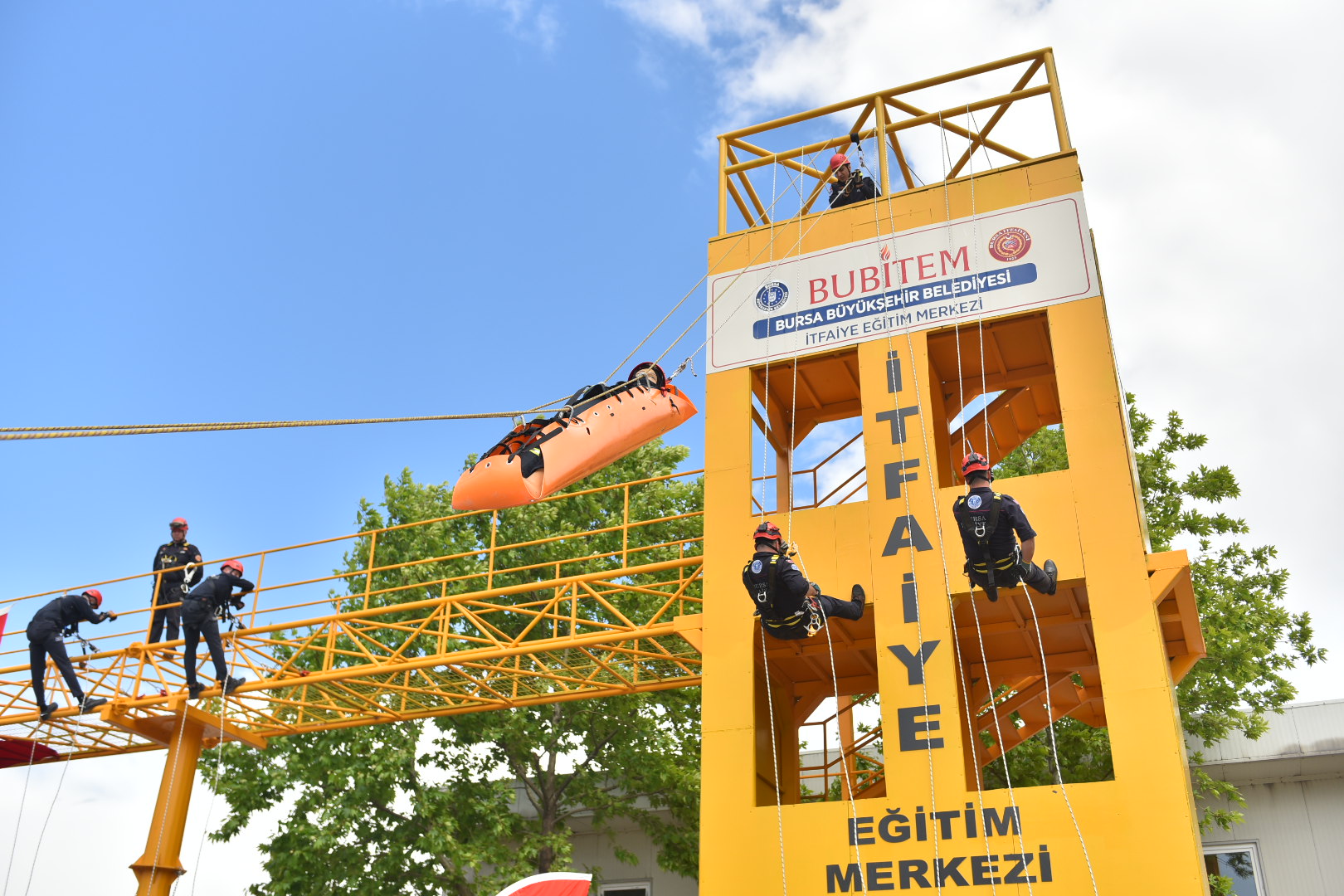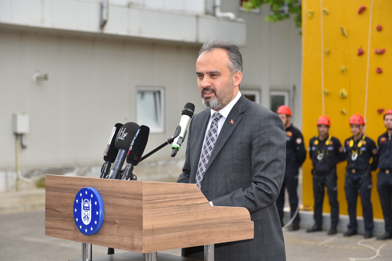 Bursa, başta yangınlar olmak üzere tabii afetlerde daha güçlü hale geldi. Büyükşehir Belediyesi tarafından gönüllü itfaiye erlerinin her türlü afete karşı eğitilmesi adına yapılan istasyonlar, Büyükşehir Belediye Başkanı Alinur Aktaş tarafından hizmete açıldı. Başkan Aktaş, törende yaptığı konuşmanın ardından itfaiye erlerinin istasyonlarda gerçekleştirdiği tatbikatları izledi. Törende, kapalı bir mekanda çıkan ve sıcaklığı 700 dereceyi bulan yangın soğutulurken, gaz sızıntıları ile kimyasal olaylara müdahale edildi. Tatbikat, kuyu kurtarma, duman evi, trafik kazalarına müdahale, yüksekten çalışma ve tırmanma istasyonlarında gerçekleştirildi.