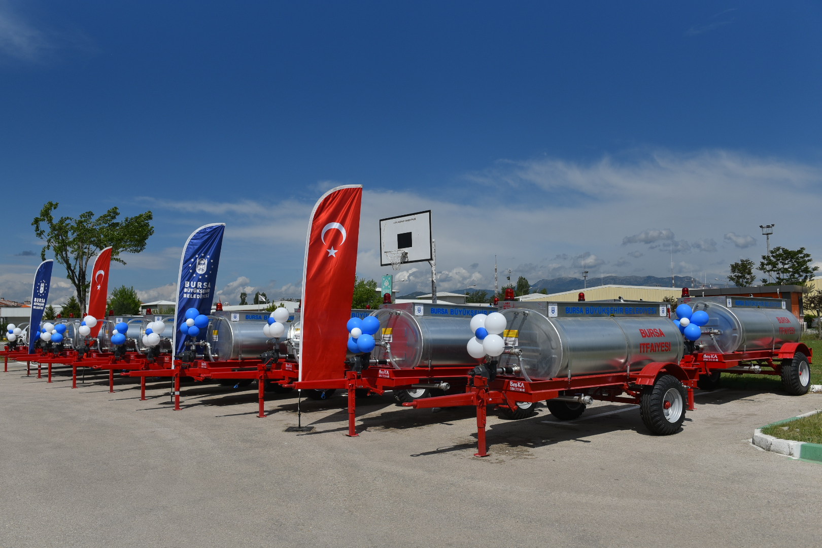 Büyükşehir Belediyesi İtfaiye Daire Başkanlığı Küçük Balıklı Tesisleri’nde gerçekleştirilen törende; Orhangazi-Sölöz, Paşapınar ve Yenigürle, İznik-Yörükler, İnegöl-Süle, Çitli ve Hamzabey, Yenişehir-Karaamca, Mustafakemalpaşa-Dorak, Büyükorhan-Geynik, Gedikler ve Bayındır, Keles-Gelemiç, Harmancık-Gülözü, Nalbant ve Kozluca mahallelerine su tankerleri teslim edildi.