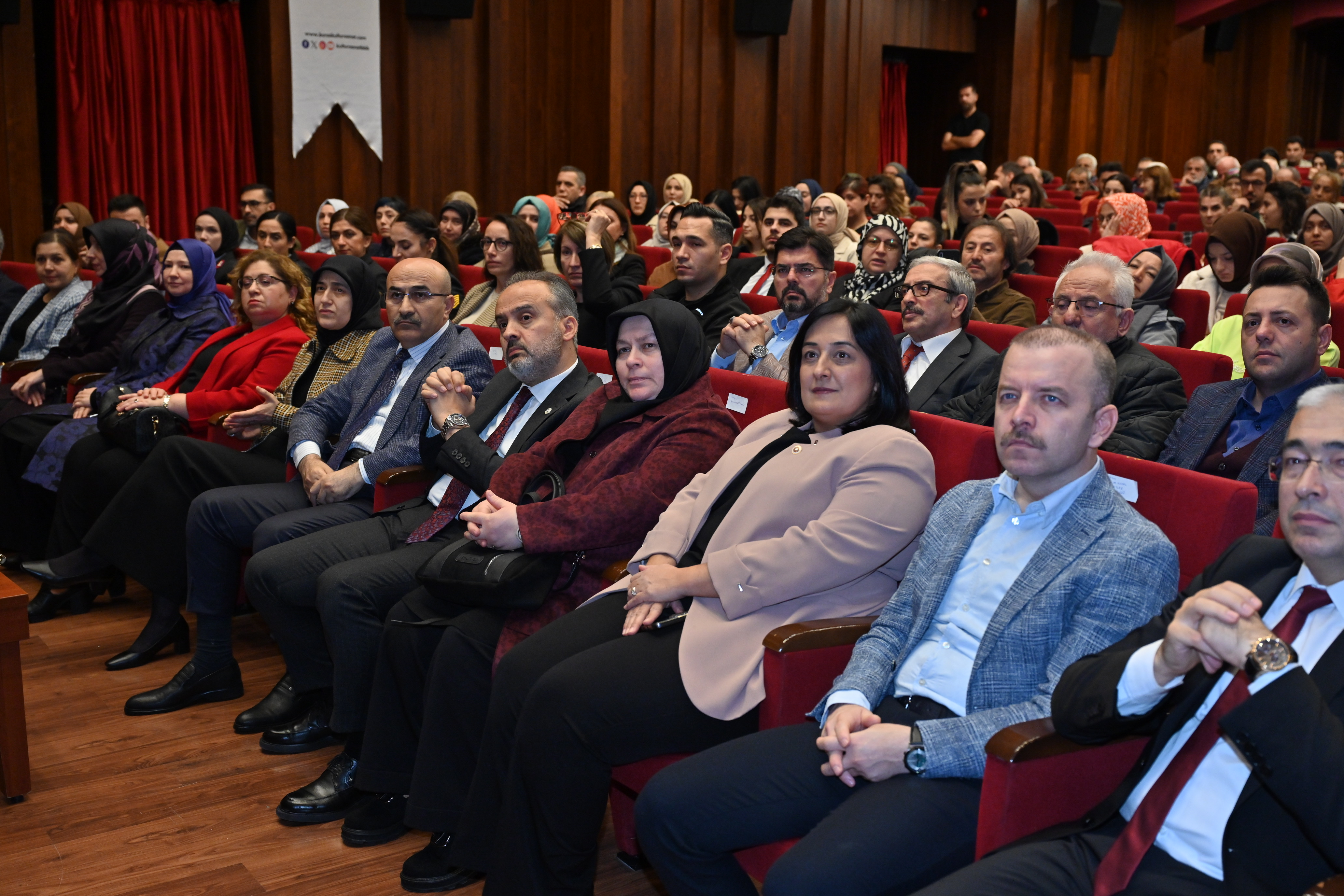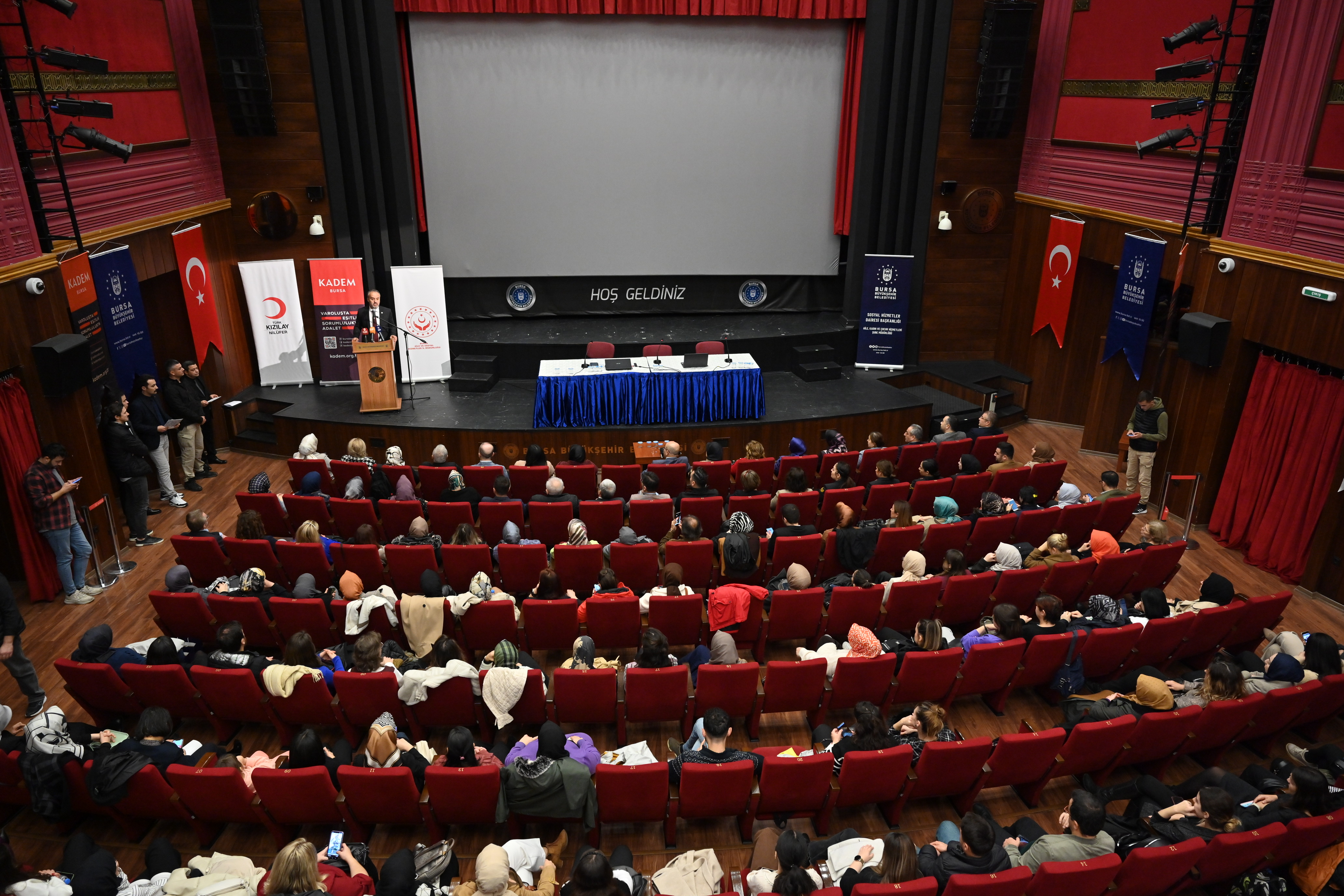 25 Kasım Kadına Yönelik Şiddete Karşı Uluslararası Mücadele Günü kapsamında düzenlenen ‘Güven Toplumunun İnşası Şiddetin Anatomisi ve Çözüm Yolları Paneli’ Tayyare Kültür Merkezinde yapıldı. Bursa Valisi Mahmut Demirtaş, Büyükşehir Belediye Başkanı Alinur Aktaş ve Bursa Milletvekili Emel Gözükara Durmaz’ın da katıldığı panel öncesi, davetliler kadın kuruluşları tarafından hazırlanan el işlerinin yer aldığı sergiyi gezdi.