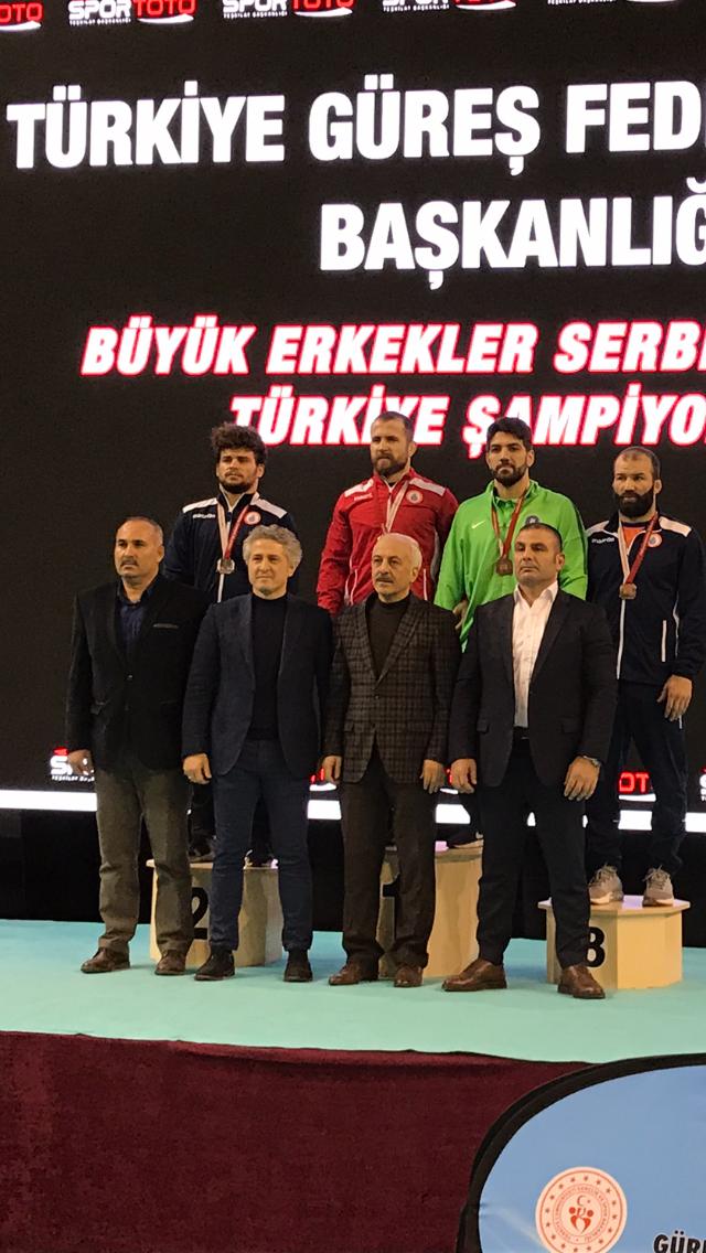 Türkiye Güreş Federasyonu tarafından düzenlenen Büyük Erkekler Serbest Güreş Türkiye Şampiyonası Ankara’da tamamlandı. Taha Akgül Spor Salonu’nda yapılan şampiyonada 80 takımdan 443 sporcu mücadele etti. Bursa ekibinin 20 sporcuyla yer aldığı organizasyonda 86 kiloda Burak Şahin ve 74 kiloda Tarık Gür üçüncü olarak yeşil-beyazlılara iki bronz madalya kazandırdı. 57 kiloda Emre Şahin ile beşincilik ve 65 kiloda Duhan Hançerli ile onunculuk derecesi elde eden Bursa Büyükşehir Belediyespor Kulübü, takımlar sıralamasında 42 puan toplayarak dokuzuncu oldu.