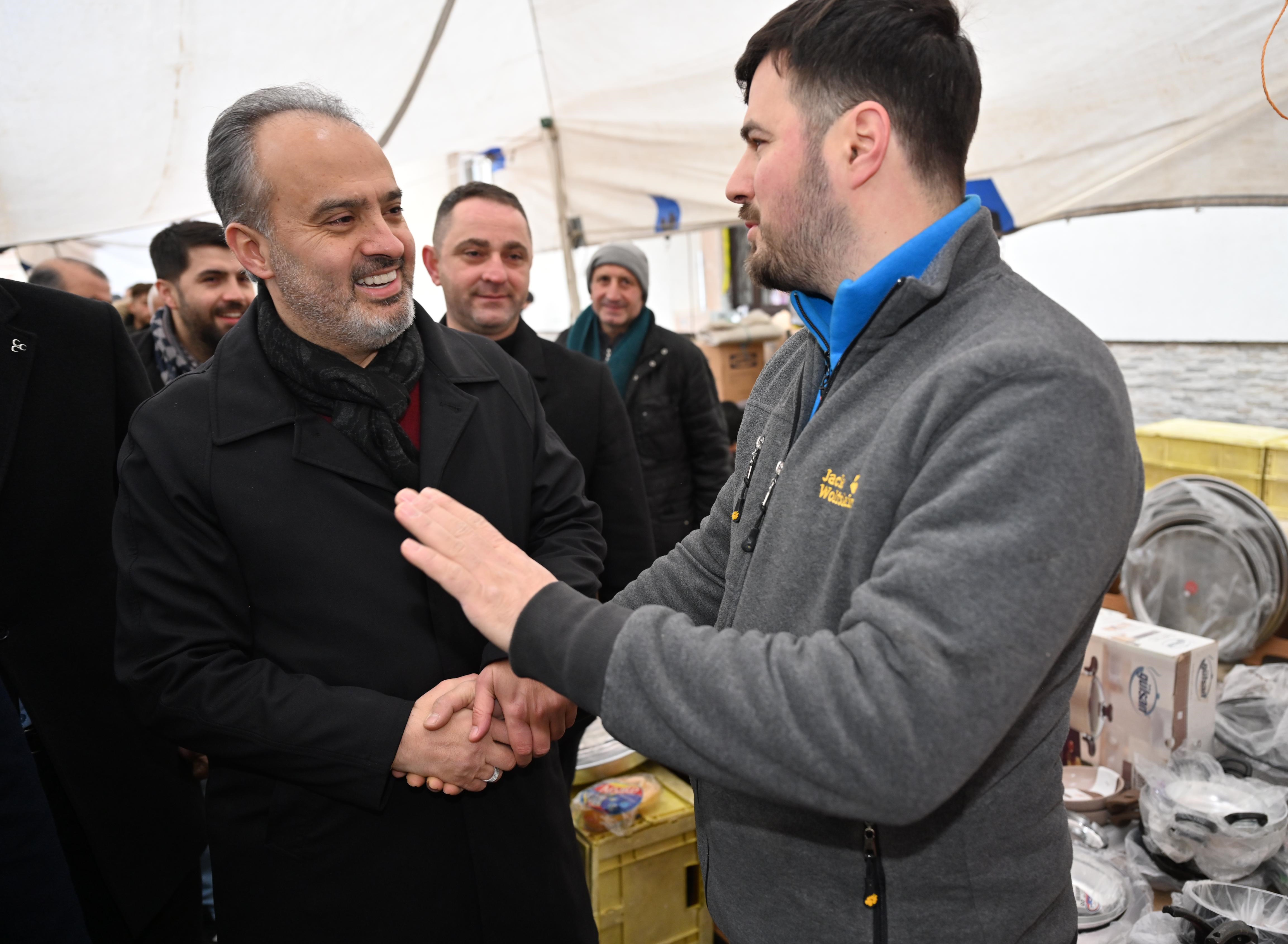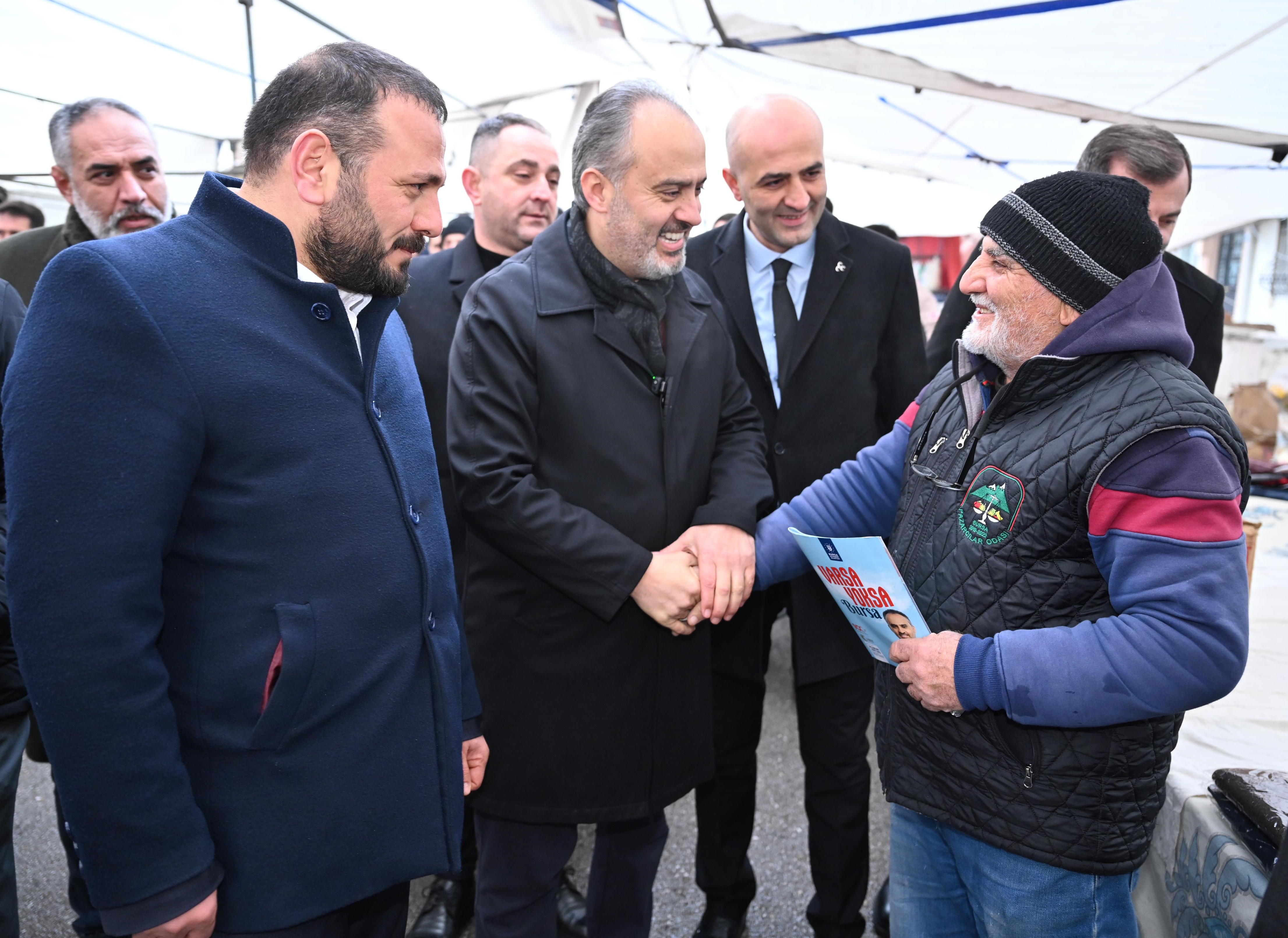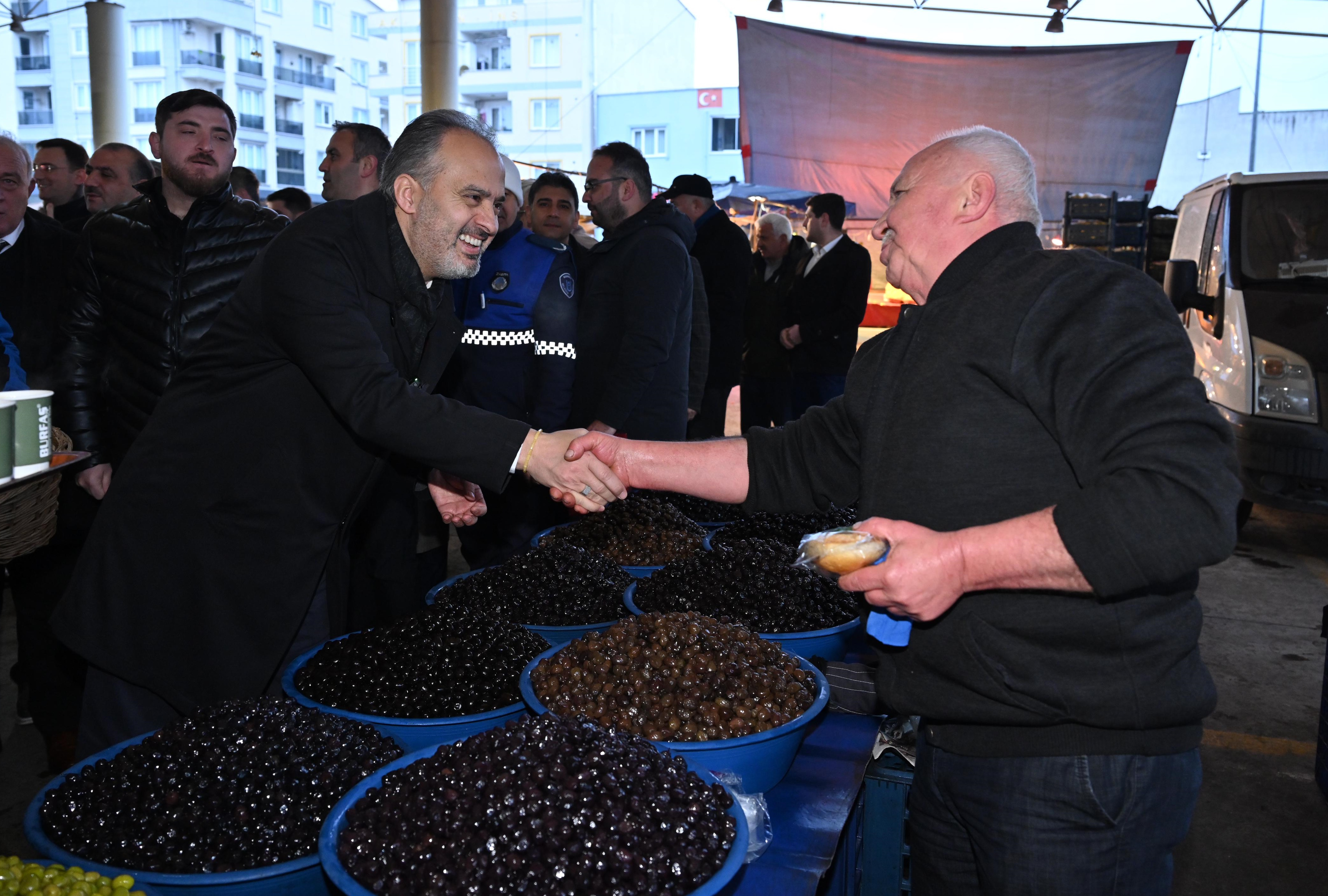 Konuşmanın ardından Başkan Aktaş ve beraberindekiler, pazar alanındaki tezgahları tek tek gezerek pazarcı esnafına çorba ikramında bulunarak sohbet etti. Pazarda alışveriş yapan vatandaşlarla da konuşan Başkan Aktaş, kendisine iletilen talep ve görüşleri dikkatle dinleyerek not aldı.