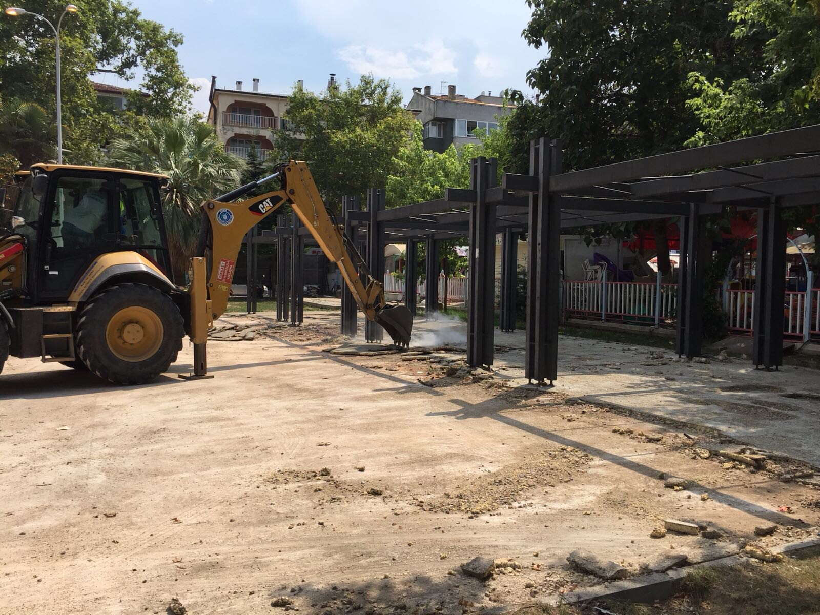 BURSA - Mudanya Belediye Başkanı Hayri Türkyılmaz’ın “Güzelyalı Atatürk Parkı’ndaki çalışmalarımız Büyükşehir tarafından engellendi” şeklindeki açıklamalarına Büyükşehir sözle değil icraatla karşılık verdi. Büyükşehir Belediyesi ekiplerinin parka girişini engellemek için Mudanya Belediyesi iş makineleriyle girişi kapatırken, Büyükşehir ekipleri buna rağmen meydanda düzenleme çalışmalarına başladı.
