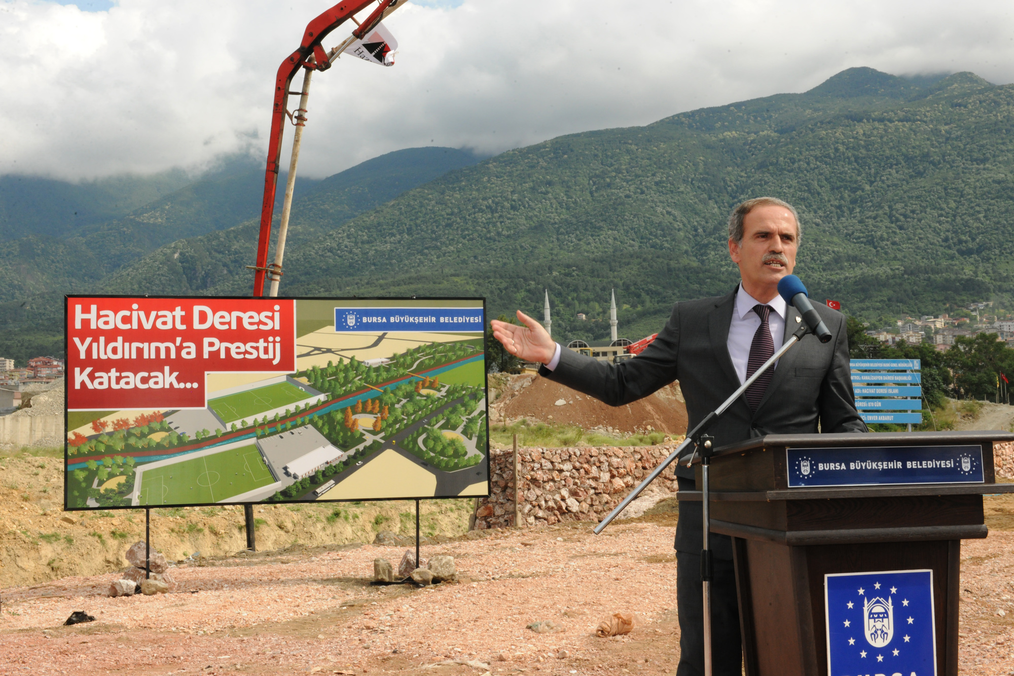 Yıldırım Belediye Başkanı Özgen Keskin de yaptığı konuşmada, yerel ve genel el ele çalıştığı zaman her zaman güzel hizmetlerin ortaya çıktığını söyledi. Büyükşehir Belediyesi tarafından başlatılan Hacıvat Deresi ıslah çalışmalarının da bu kapsamda değerlendirilebileceğini belirten Keskin, "Burada da Büyükşehir Belediyemizle el ele vererek, çok önemli bir projeyi başlattık. Hacıvat ve Çınarönü mahallelerini cennete çevirecek, çok önemli bir projeye imza attık. Büyükşehir Belediye Başkanımız Recep Altepe´ye ve ekibine huzurlarınızda teşekkür ediyorum" şeklinde konuştu.