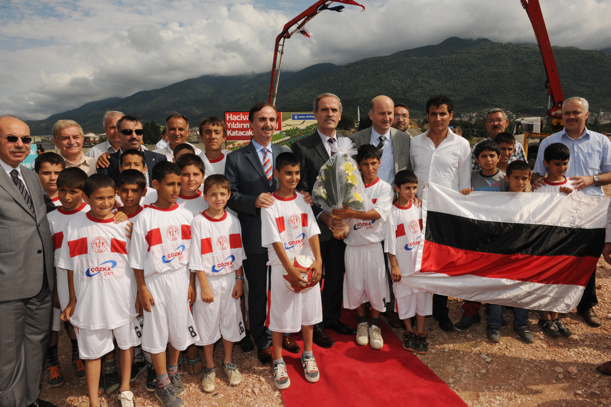 Törenin ardından beraberindekilerle birlikte inşaat alanını denetleyen Başkan Altepe´ye Hacıvat Spor Kulübü´nün minik oyuncuları tarafından çiçek takdim edildi.