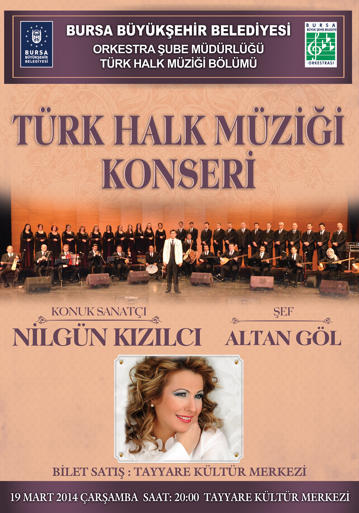 - BÜYÜKŞEHİR BELEDİYESİ ORKESTRA ŞUBE MÜDÜRLÜĞÜ TÜRK HALK MÜZİĞİ BÖLÜMÜ’NÜN TAYYARE KÜLTÜR MERKEZİ’NDE 19 MART ÇARŞAMBA GÜNÜ SAAT 20.00’DA VERECEĞİ KONSERİN KONUK SANATÇISI NİLGÜN KIZILCI OLACAK.
