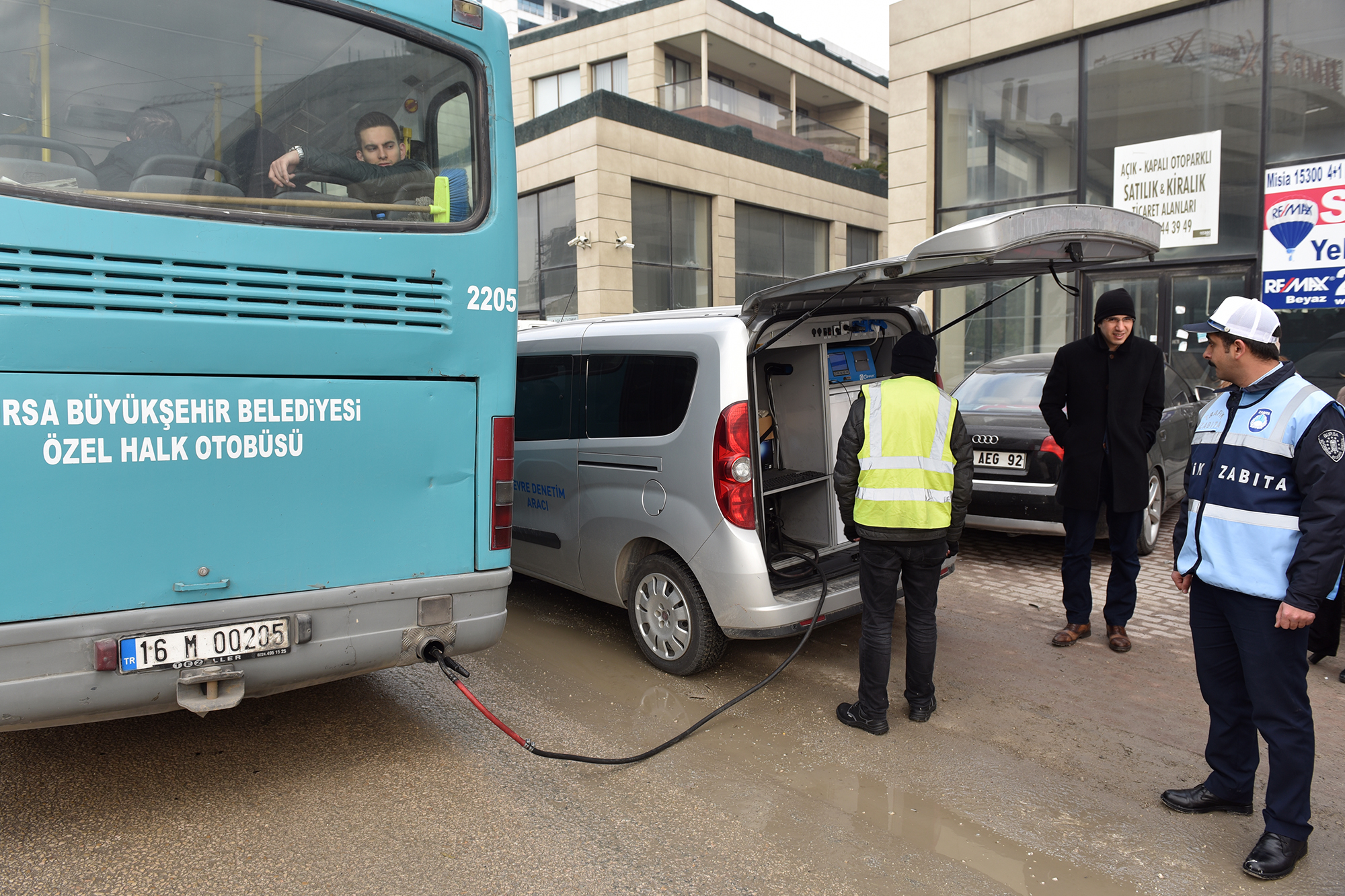 - Bursa Büyükşehir Belediyesi, trafikten kaynaklanan hava kirliliğini engellemek için özel halk otobüslerinde denetimlerini aralıksız sürdürüyor.