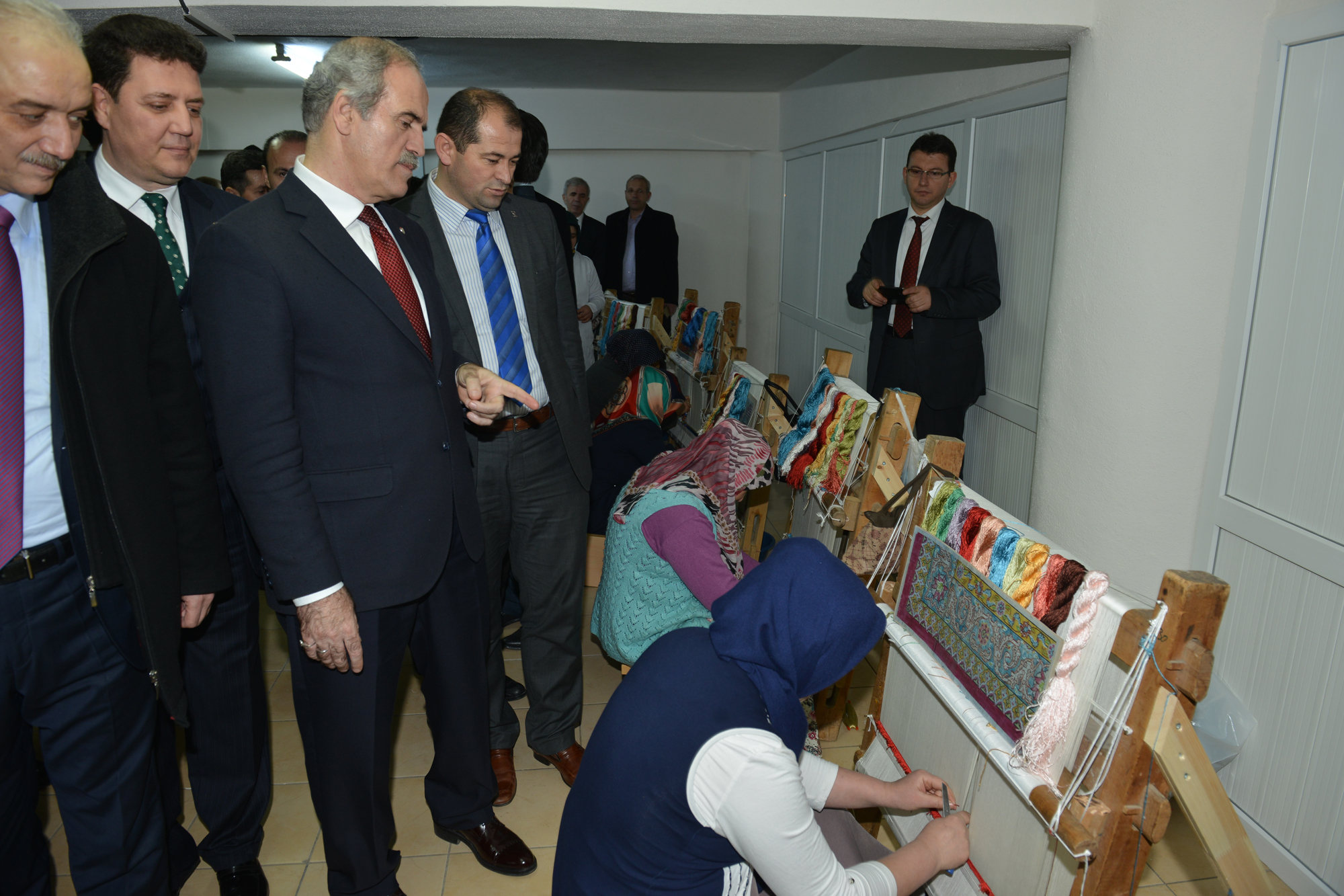 Daha sonra kurdele keserek, kurs merkezinin açılışını yapan Başkan Altepe, makine başında çalışan kursiyerler ile halı dokuyan kursiyerlerin çalışmalarını inceledi.