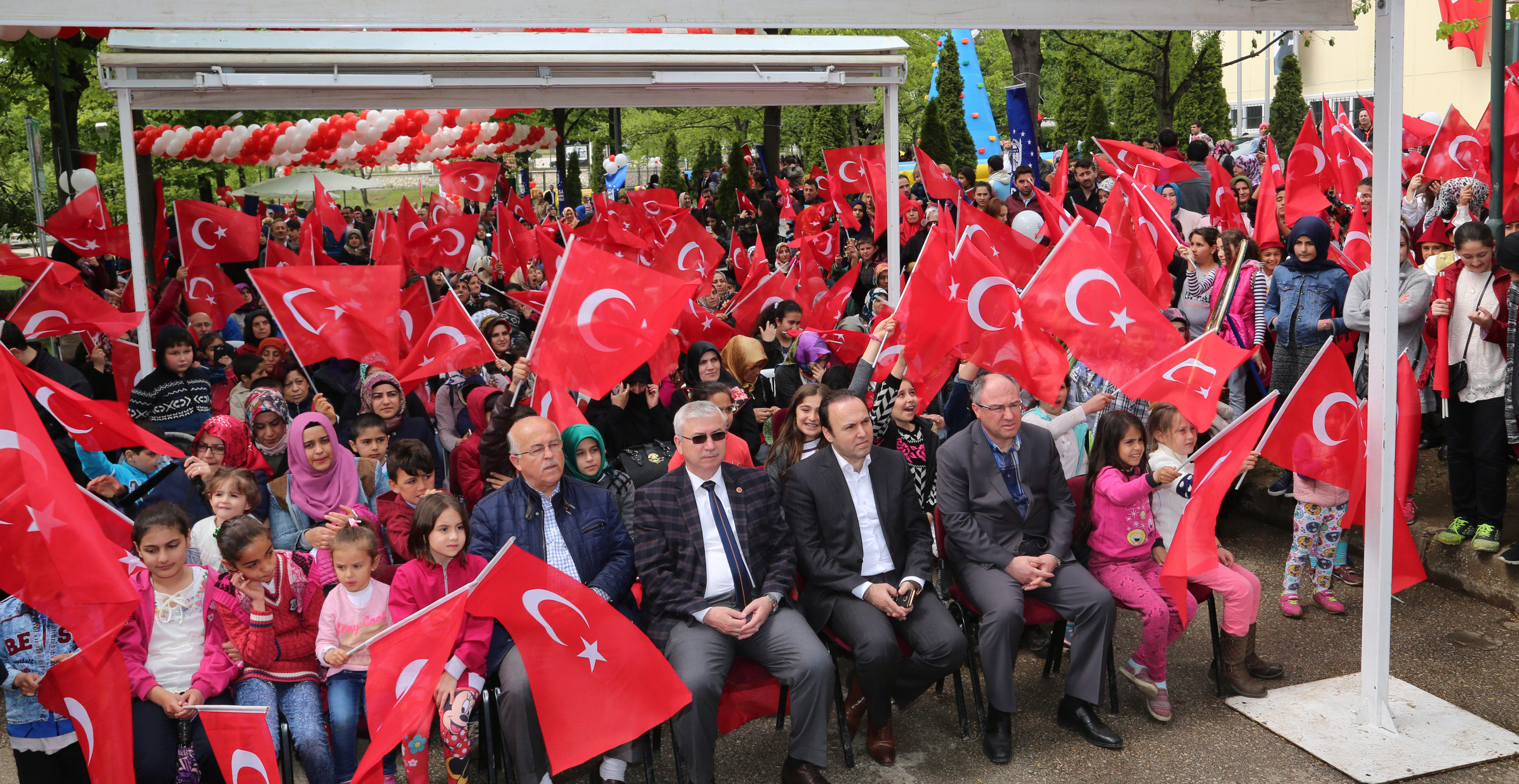 Bursa Büyükşehir Belediyesi Hamitler Çocuk ve Gençlik Merkezi’nde gerçekleştirilen ‘23 Nisan Ulusal Egemenlik ve Çocuk Bayramı’ kutlamaları, birbirinden renkli faaliyetlerle adeta şenlik havasında geçti. Büyükşehir Belediyesi Hamitler Çocuk Merkezi’nde eğitimlere katılan çocuklar, 23 Nisan’da önce Büyükşehir Belediyesi Başkanvekili Şükrü Köse’yi, Tarihi Belediye Binası’nda ziyaret ettiler. Başkanvekili Köse, çocukların ‘23 Nisan Ulusal Egemenlik ve Çocuk Bayramı’nı tebrik ettiği ziyaretin ardından Hamitler Çocuk Merkezi’ne giderek merkezin bahçesinde bu yıl 4.’sü gerçekleştirilen ‘Çocuk Şenliği’ne katıldı.