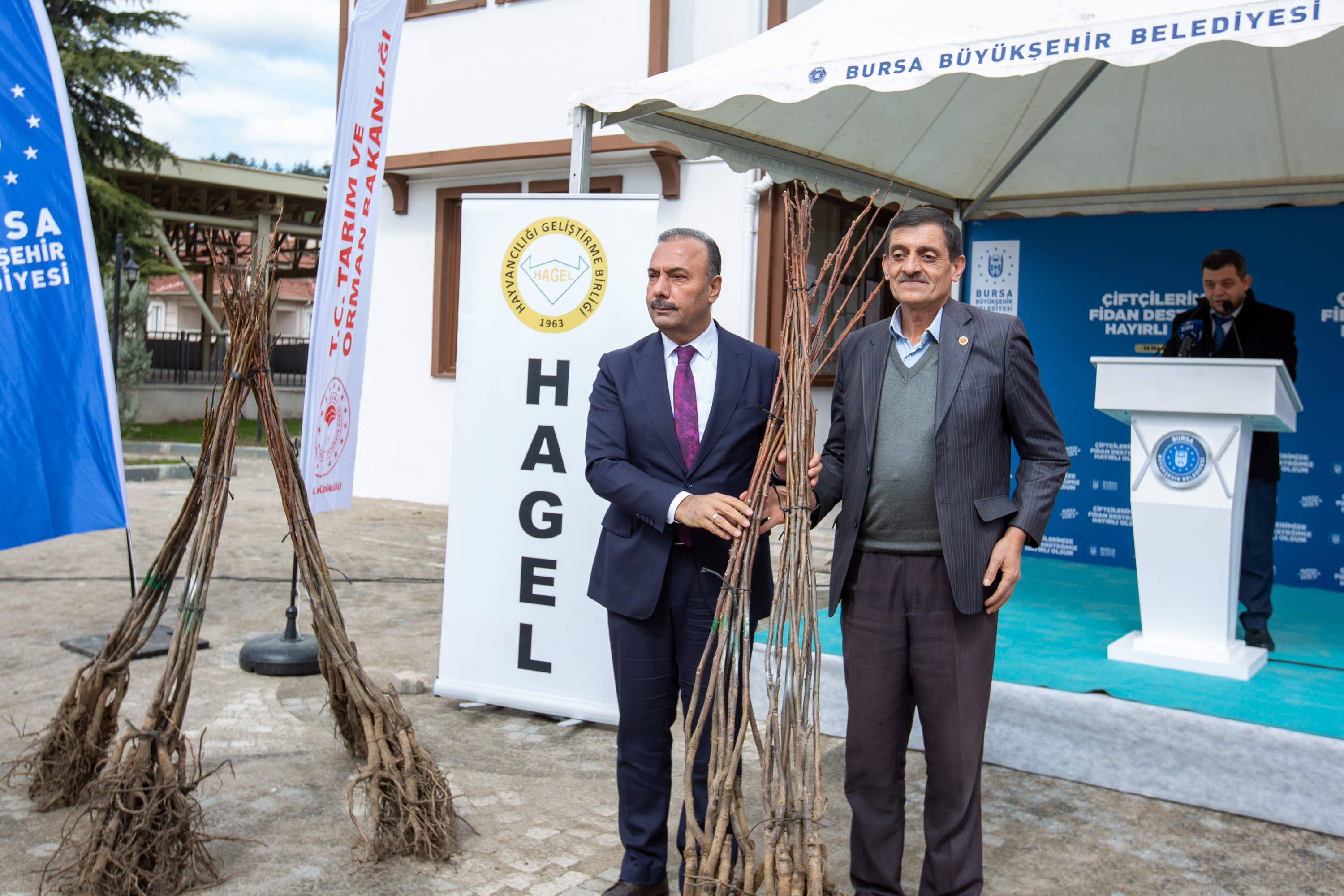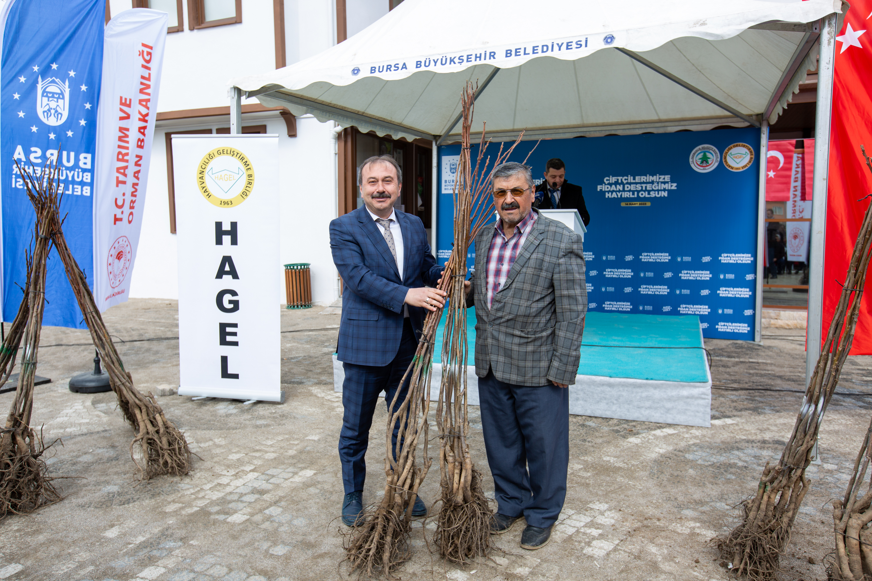 BURSA – Bursa Büyükşehir Belediyesi, kırsal kalkınma hedefleri doğrultusunda Harmancıklı çiftçilere 6100 adet ceviz fidanı dağıttı.