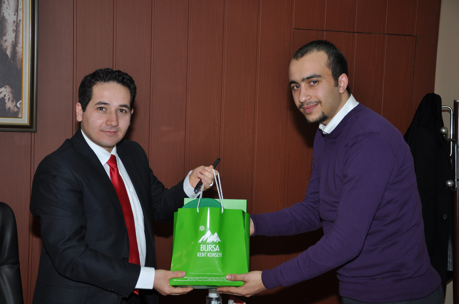 Öksüz, ziyaretin sonunda Kaymakam Osmanoğlu’na, Bursa Kent Konseyi yayınlarını içeren bir set hediye etti.