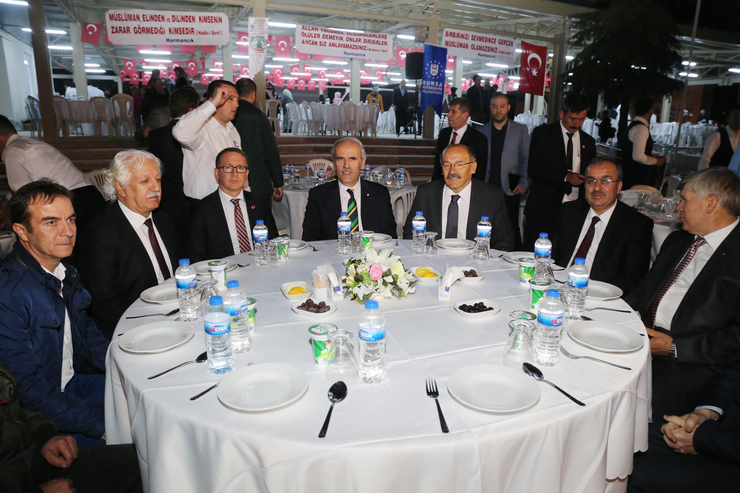 Büyükşehir Belediyesi bürokratlarının da katıldığı iftarda yaklaşık 1500 vatandaşla birlikte orucunu açan Başkanvekili Karlık, Ramazan ayının önemine değindiği konuşmasında, “Bursa Büyükşehir Belediyesi olarak her zaman sizlerin yanındayız. Büyükşehir Belediye Başkanımız Sayın Recep Altepe önderliğinde, Harmancık’ın daha hızlı kalkınması, Harmancık’taki kardeşlerimizin yüzünün gülmesi, onların yarınlara daha güvenle bakması ve her alanda Harmancık’ın kalkınması için Bursa Büyükşehir Belediyesi olarak hizmet ediyoruz” diye konuştu.