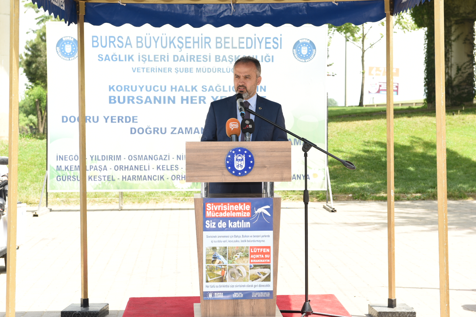 Başkan Alinur Aktaş, 17 ilçede sürdürülecek ilaçlama çalışmalarında 10 veteriner hekim, 13 ekip sorumlusu ve 230 personelin görev alacağını kaydetti. Bursalıların daha sağlıklı bir yaz geçirmesi için 93 araç ve 336 ekipmanın da mücadele kapsamında seferber edileceğini söyleyen Başkan Aktaş, “Hemşerilerimizin yaz aylarını rahat ve huzur içinde geçirebilmesi için ilgili birimlere önemli miktarda mali kaynak aktardık. Azami gayret sarf ediyoruz. Burada vatandaşlarımızdan da beklentimiz var. Bursalılar, varil-kova ve araç lastiği gibi sivrisinek larva üreme kaynağı olan atıkları yerleşim bölgelerinde bulundurmamalıdır. Bodrumlarında su varsa, bize bildirmelidirler. Karasineğin oluşmaması için çöp ve hayvansal atıklar kontrol altına alınıp, mümkünse torbalanarak atılmalıdır. Tüm bu hassasiyetler, haşere ile mücadelemize pozitif katkı sağlayacaktır” diye konuştu.