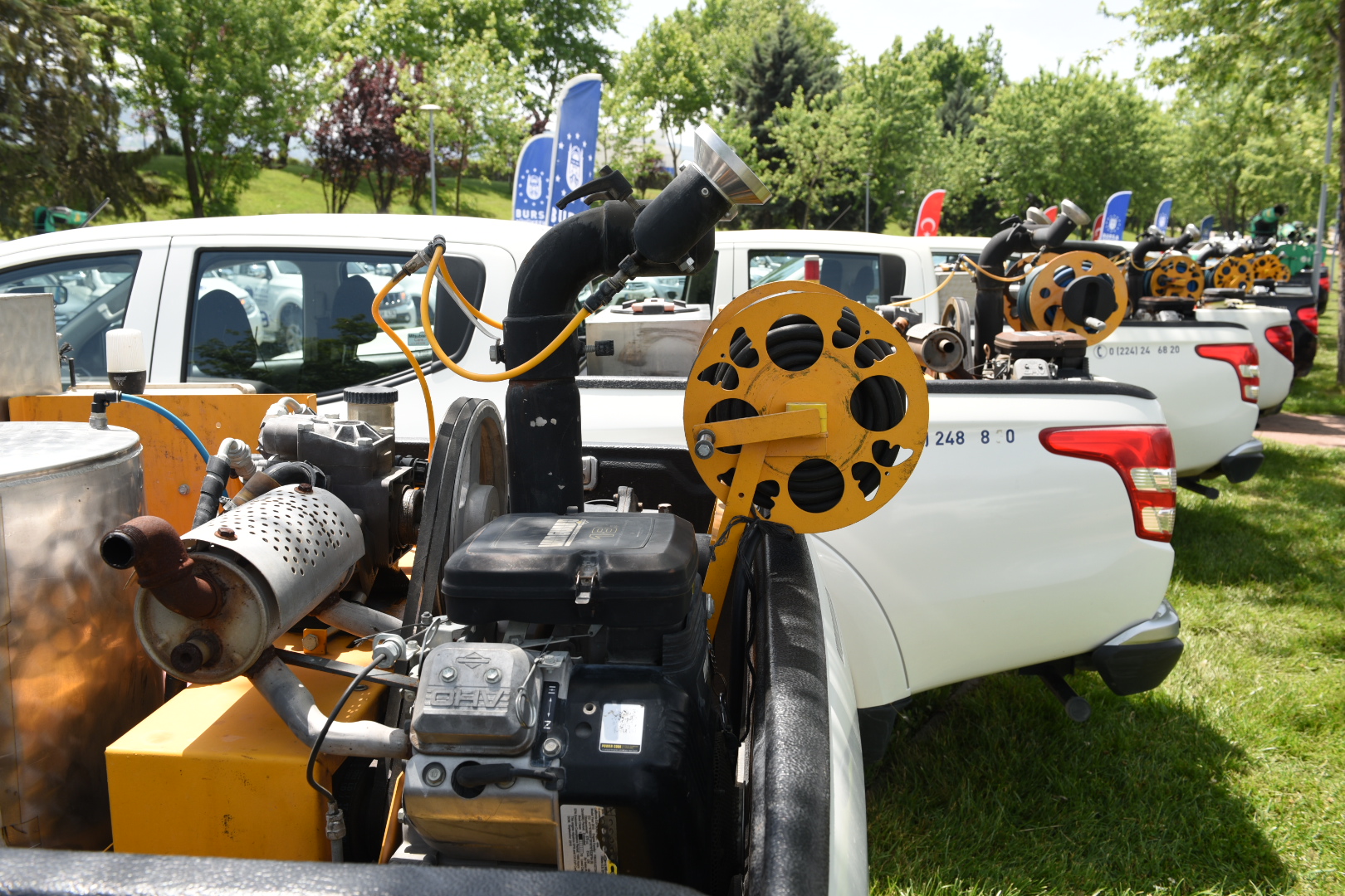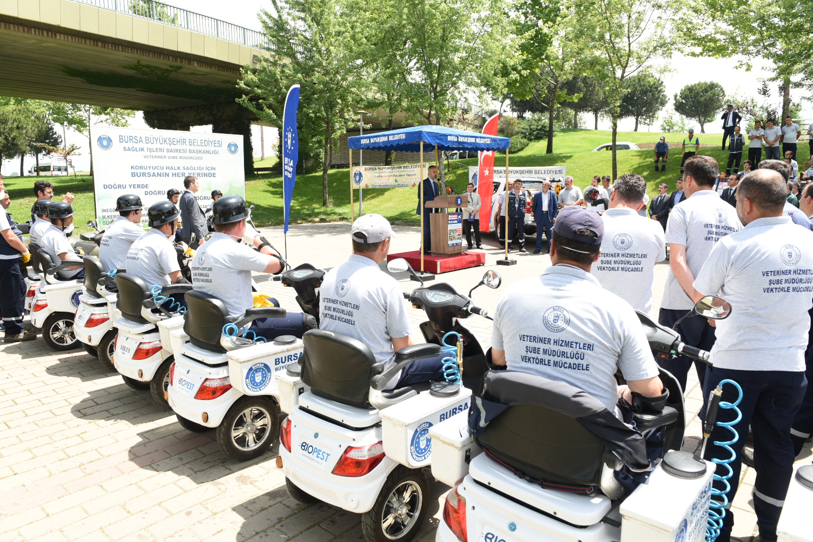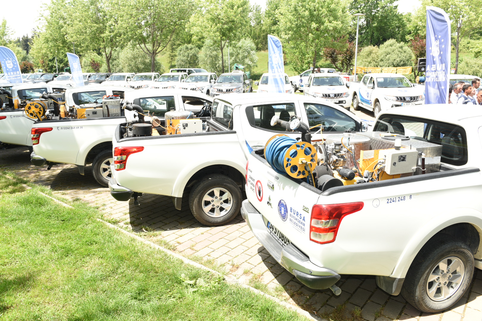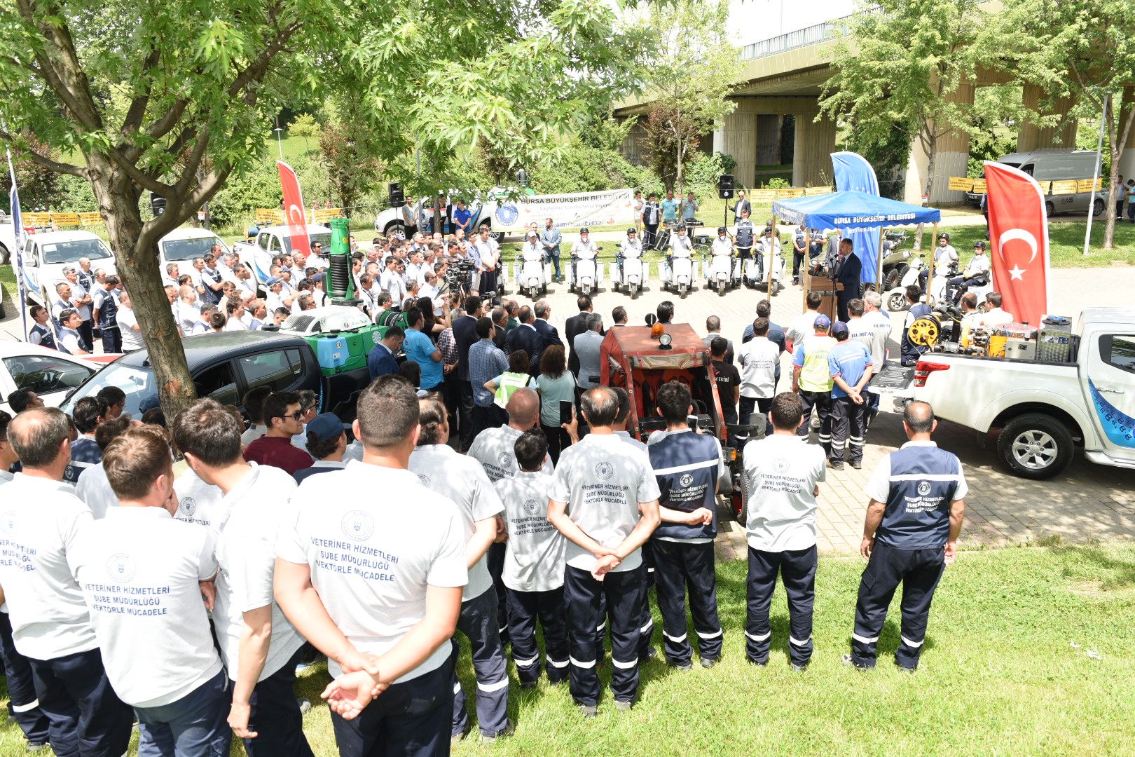 BURSA - Bursa’nın ‘doğası ve yeşiliyle’ daha yaşanabilir olması yönünde faaliyetlerini artırarak sürdüren Büyükşehir Belediyesi, vatandaşların konforlu bir yaz geçirmesi için 253 personel, 93 araç ve 336 ekipman ile haşere ile mücadele çalışmalarını başlattı. Sağlık İşleri Dairesi Başkanlığınca gerçekleştirilecek ilaçlama faaliyetlerine start verilmesi nedeniyle düzenlenen törene katılan Büyükşehir Belediye Başkanı Alinur Aktaş, ağaç ve bitki ile haşere üreme alanlarını kontrol altında tutarak halk sağlığını korumayı hedeflediklerini söyledi.