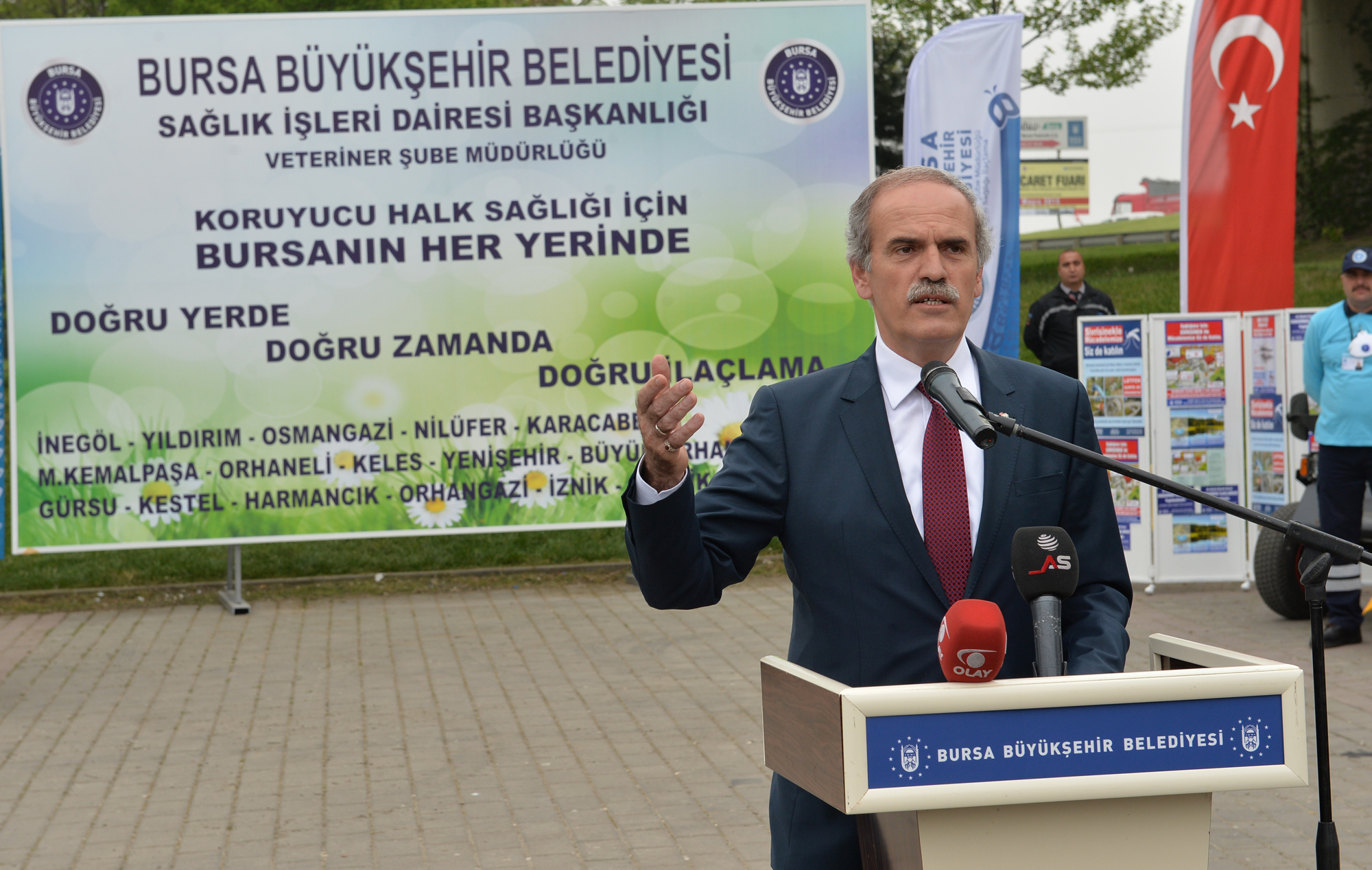 Nilüfer Vadisi’nde ilaçlama ekiplerinin göreve başlamasıyla ilgili düzenlenen törende konuşan Başkan Altepe, uçan ve yürüyen haşerelerin taşıdıkları hastalıklar ve oluşturdukları ekonomik zararlar sebebiyle insan sağlığını tehdit ettiğini belirtti. Özellikle veba, sıtma, tifüs ve kırım kongo kanamalı ateşi gibi hastalıklara bu tür haşerelerin neden olduğunu, Dünya Sağlık Örgütü’nün verilerine göre her yıl 500 bin insanın sivrisineklerin bulaştırdığı hastalıklar yüzünden öldüğünü vurgulayan Başkan Altepe, 50 bin üreme kaynağında her 15 günde bir ilaçlama yapacaklarını kaydetti. Başkan Altepe, bu yıl beşincisi yapılacak çalışmalarda Dünya Sağlık Örgütü ve Sağlık Bakanlığı’nın ruhsatlandırdığı ilaçlar ile biyolojik mücadele için çeşitli bakterilerin kullanılacağını söyledi.
