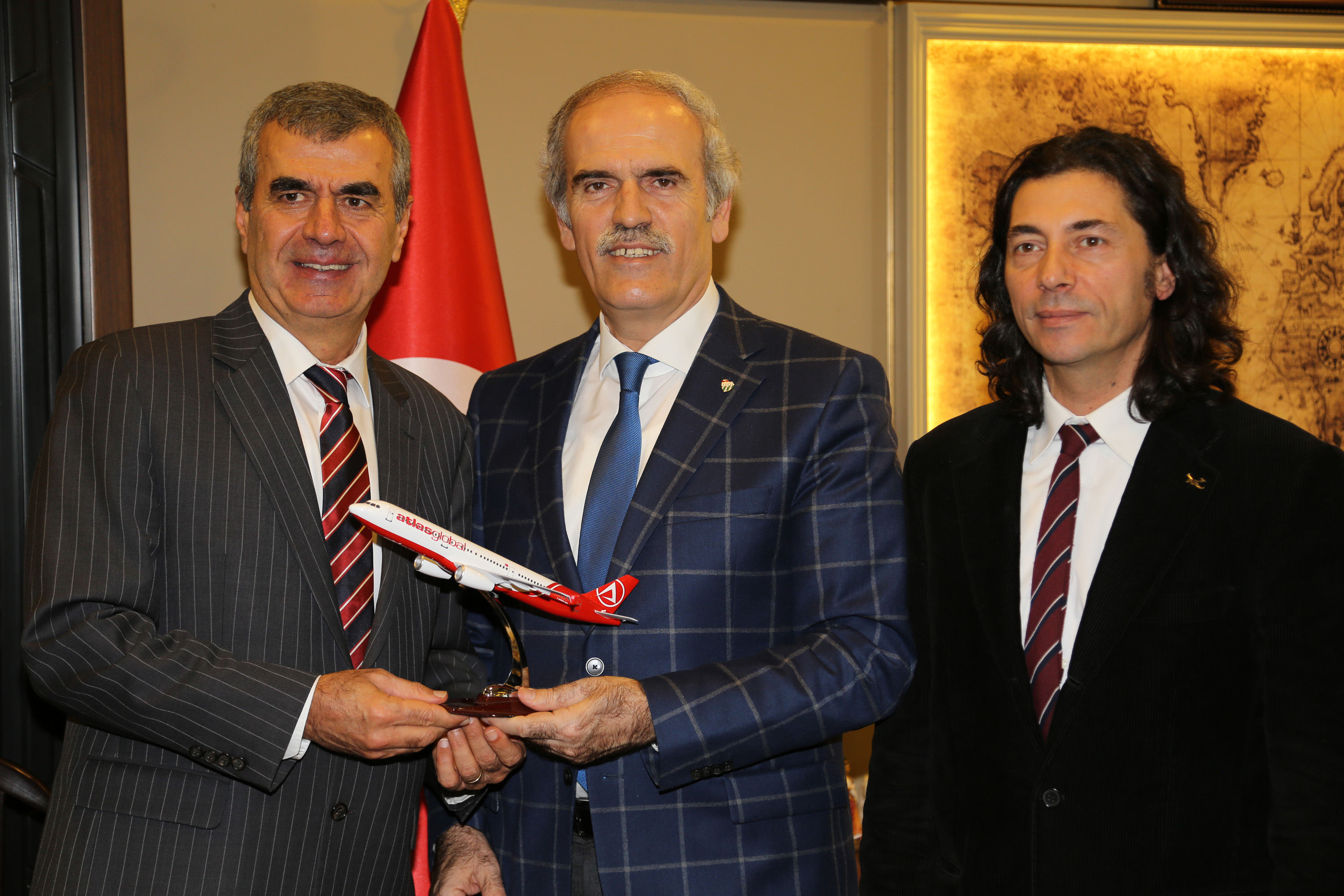 Büyükşehir Belediye Başkanı Recep Altepe, Yunuseli Havaalanı ile ilgili projeleri nedeniyle kendisini ziyaret eden Atlas Global Genel Müdürü Orhan Coşkun ve Atlantik Uçuş Akademisi AFA Genel Müdürü Sermet Temizkan ile Büyükşehir Belediyesi Hizmet Binası’nda bir araya geldi.