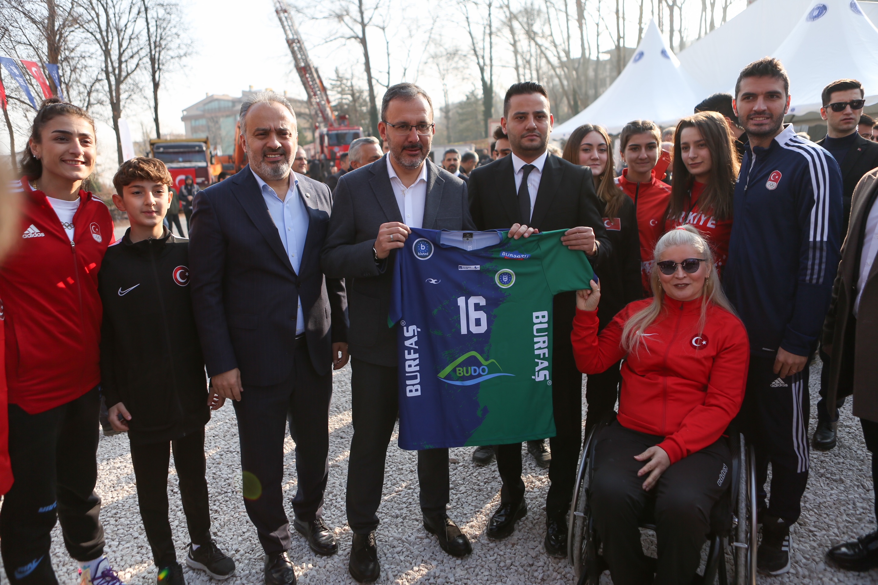 Gençlik ve Spor Bakanı Mehmet Muharrem Kasapoğlu, Bursa’nın en merkezi bölgesinde tarihi bir mekanı ihya etmek için çalışmalara start verdiklerini söyledi. Yapılan çalışmaların Bursalılara hayırlı olmasını dileyen Bakan Kasapoğlu, Bursa’nın kültür, sanat, medeniyet şehri olmasının yanında bir spor şehri olduğunu da belirtti. Bursa’da yetişen, Ay Yıldızlı bayrağımızı tüm dünyada en güçlü şekilde dalgalandıran sporcuların bu şehirden çıktığını hatırlatan Bakan Kasapoğlu, “Her biriyle gurur duyuyoruz. Onların izinden giden nice gençler var. İşte bu tesisler ve bu güçlü altyapı, yakın zamanda hem Bursa’mızı hem de ülkemizi daha büyük şekilde gururla temsil edecek nice sporcular yetiştirecek. 17 ilçede ortaya koyduğumuz yatırımları başta Bursa Büyükşehir Belediyesi olmak üzere tüm işbirliklerimizi güçlendirerek sürdüreceğiz. Tüm şehirlerimize olduğu gibi Bursa’ya da hizmet etmeyi, bu şehirden yetişecek yeni nesillere yeni imkanlar sunmayı önemli bir misyon olarak görüyoruz. Bir onur olarak, bir heyecan olarak görüyoruz. Cumhurbaşkanımızın liderliğinde son 20 yılda attığımız adımlarla Bursa’ya gençlik ve spor şehri olma özelliğini de kazandırdık. Söz verdik, inşa ettik, hayata geçirdik ve hizmete açtık. Yeni sözler vermeye, yeni hayaller kurmaya ve bu hayalleri gerçekleştirmeye hep birlikte devam edeceğiz” diye konuştu.