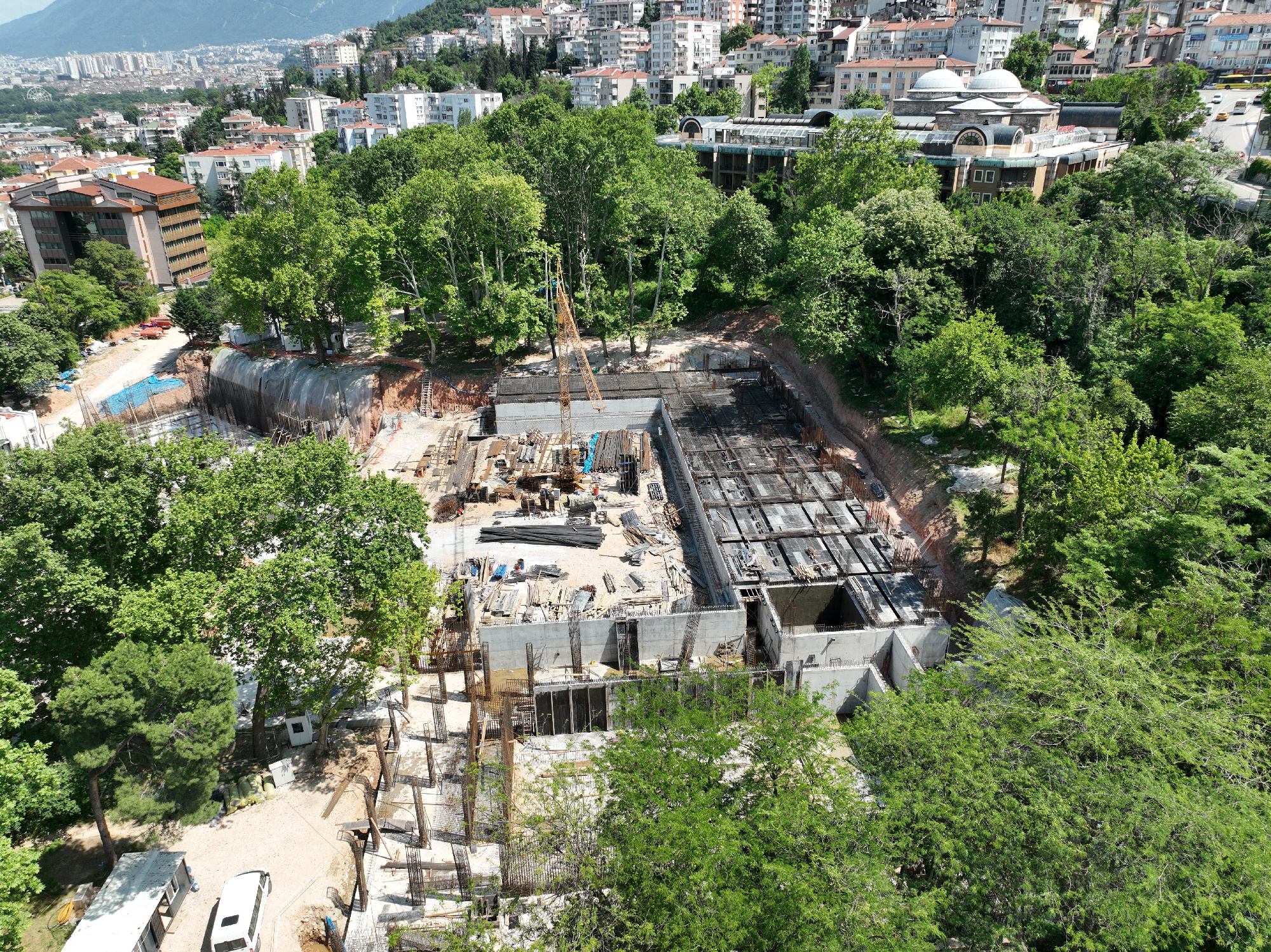 Gençlik ve Spor Bakanlığı’nın destekleriyle hayat bulan proje kapsamında Havuzlu Park’ın bulunduğu yaklaşık 30 bin metrekare alan sil baştan yenileniyor. Mevcut yapının yerine daha modern tekniklerle, fonksiyonel olarak daha uygun, kullanıcı kapasitesi artırılmış, ulusal müsabakaların da düzenlenebileceği standartlarda proje tasarlandı. Proje inşaat alanı 8 bin 500 metrekare olan yapı, iki blok olarak kurgulandı. Tesisin girişi, mevcuttaki yapı gibi parselin güney tarafından olacak. Ana blok; idari birimler, danışma, bekleme-sergi ve fuaye alanı, spor faaliyetlerinin yürütüleceği idari birimler, seminer odası, otopark ile parka ve tesise hizmet edecek restoran ile servis birimlerinden oluşacak. Diğer blok olan spor bloğunun alt katında soyunma odaları, duşlar, hamam ve sıcak su havuzları ile açık havuzların teknik birimleri yer alacak. Havuz katında ise; FINA standartlara uygun tam olimpik açık yüzme havuzu ile yarı olimpik açık yüzme havuzu bulunacak. Yarı olimpik havuzun bir kısmının derinliği artırılarak, atlama havuzu olarak da kullanılabilecek. Mevcut atlama kulesinin yerine FINA standartlara uygun 10 metrelik bir atlama platformu planlandı. Açık havuzların kotunda hizmet verecek şekilde spor salonu, ofisler, çok amaçlı bir salon ve kafeterya tasarlandı. Hemen hemen her Bursalının anılarında kendine yer bulan Havuzlu Park’ta inşaatın önümüzdeki ocak ayı içinde tamamlanması hedefleniyor.