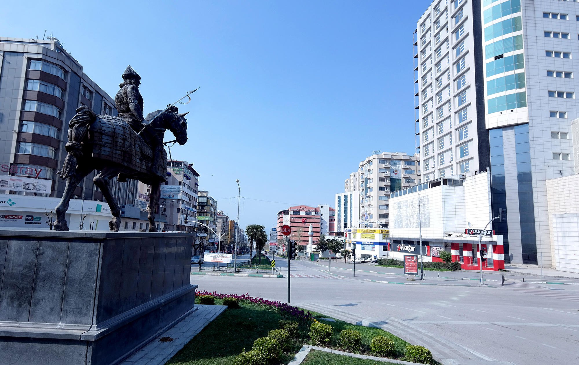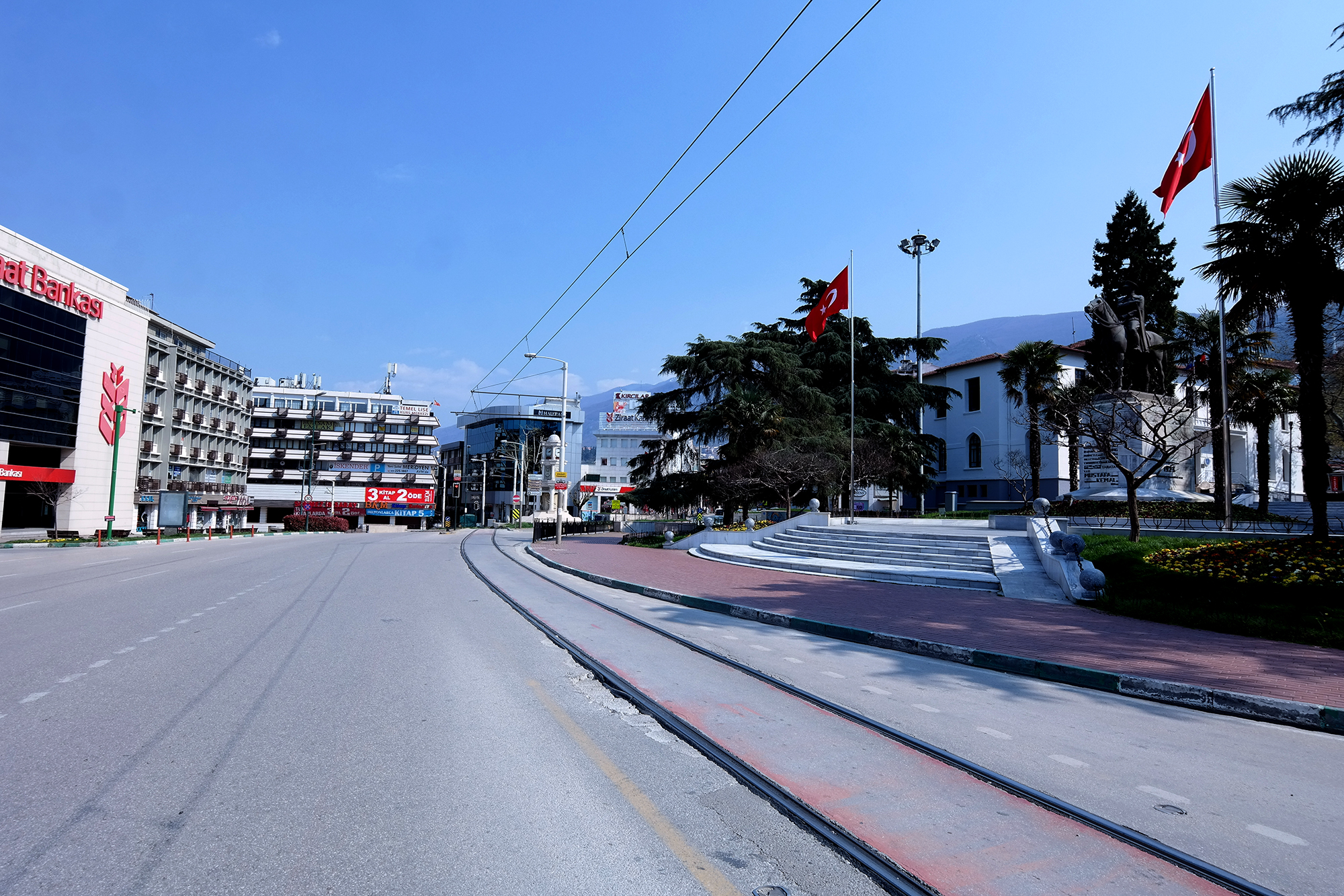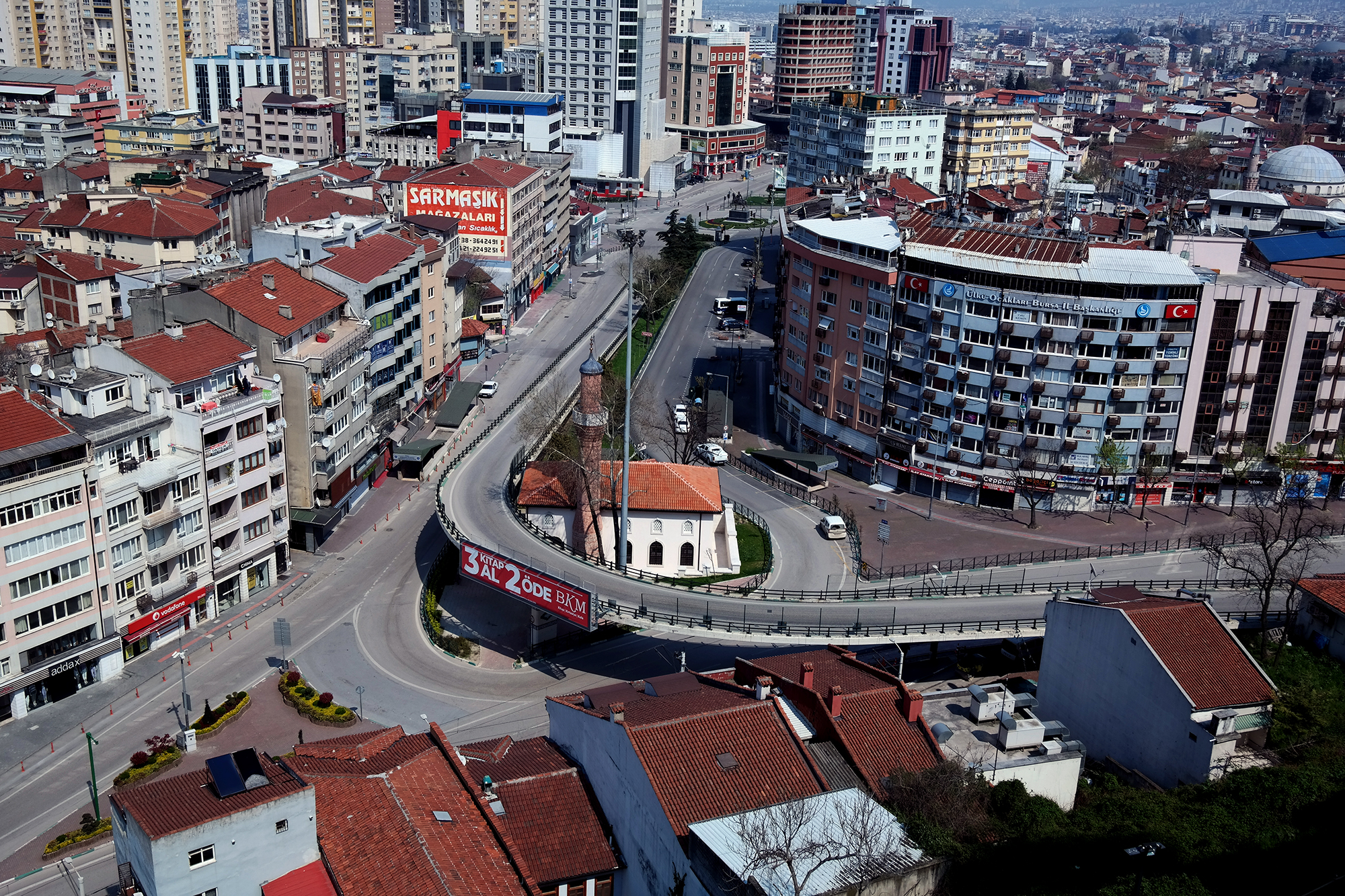 BURSA – İçişleri Bakanlığı kararıyla ‘Covid 19’ salgınının yayılımını önlemek amacıyla 30 büyükşehir ve Zonguldak’ta uygulanan sokağa çıkma yasağı ile birlikte cadde ve sokakların tamamen boşaldığı Bursa, adeta hayalet kente döndü.