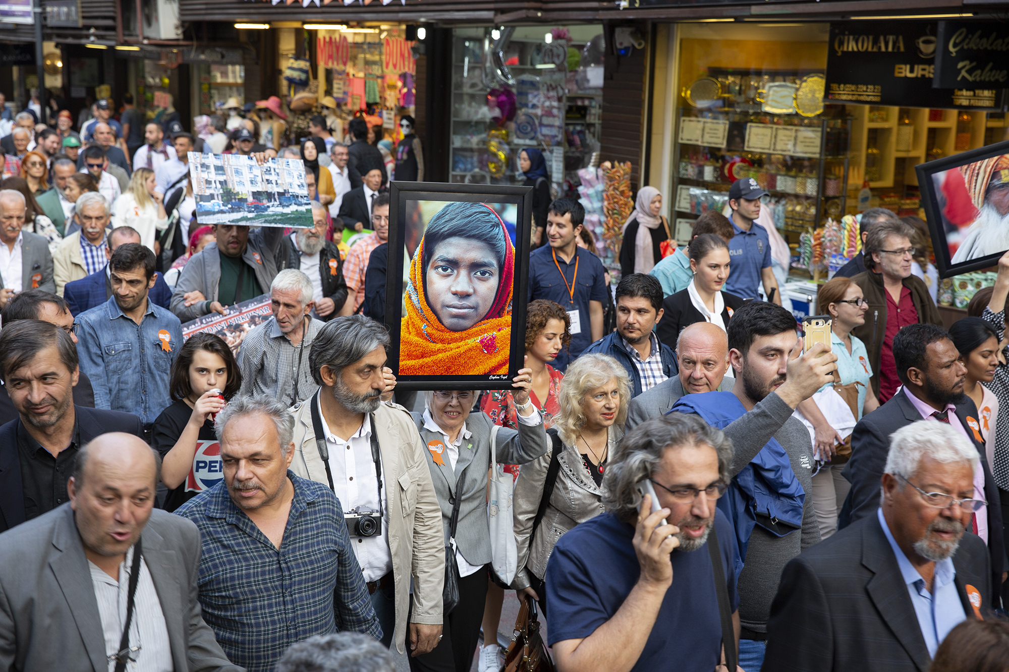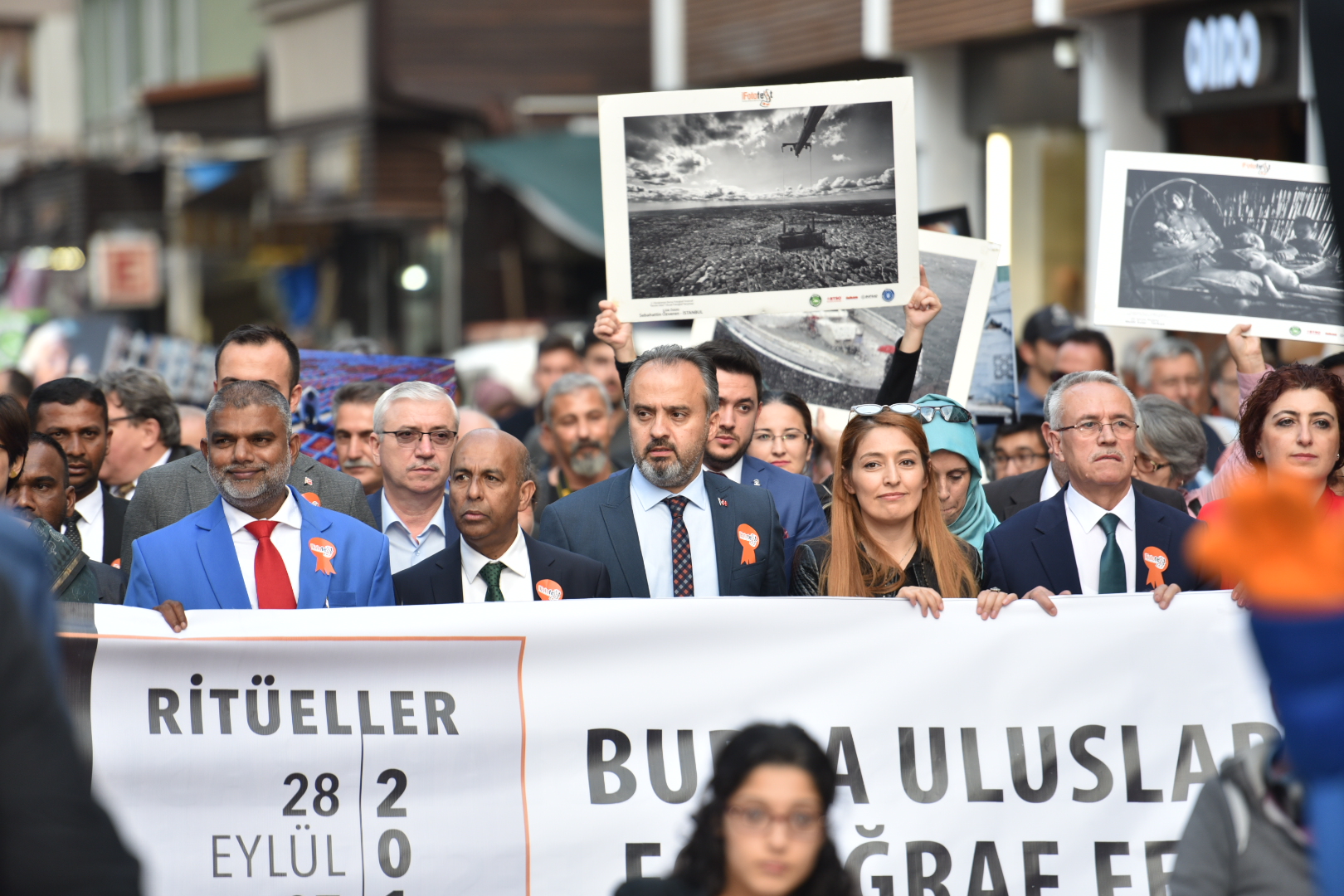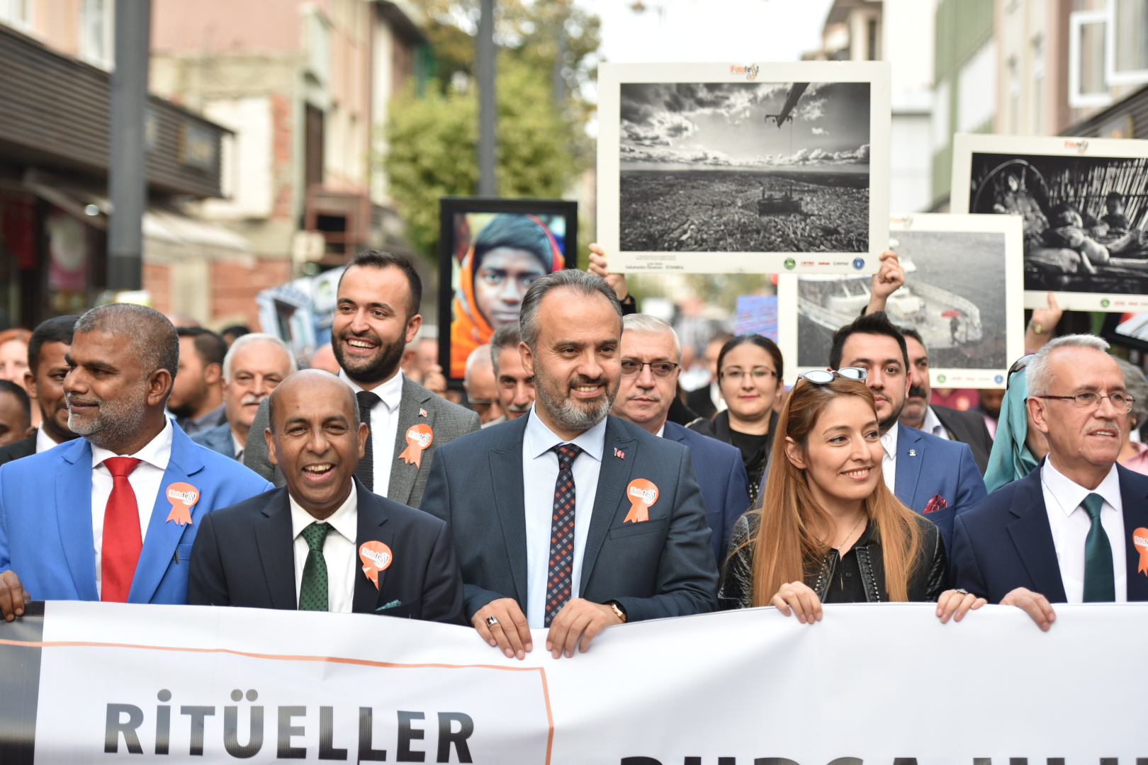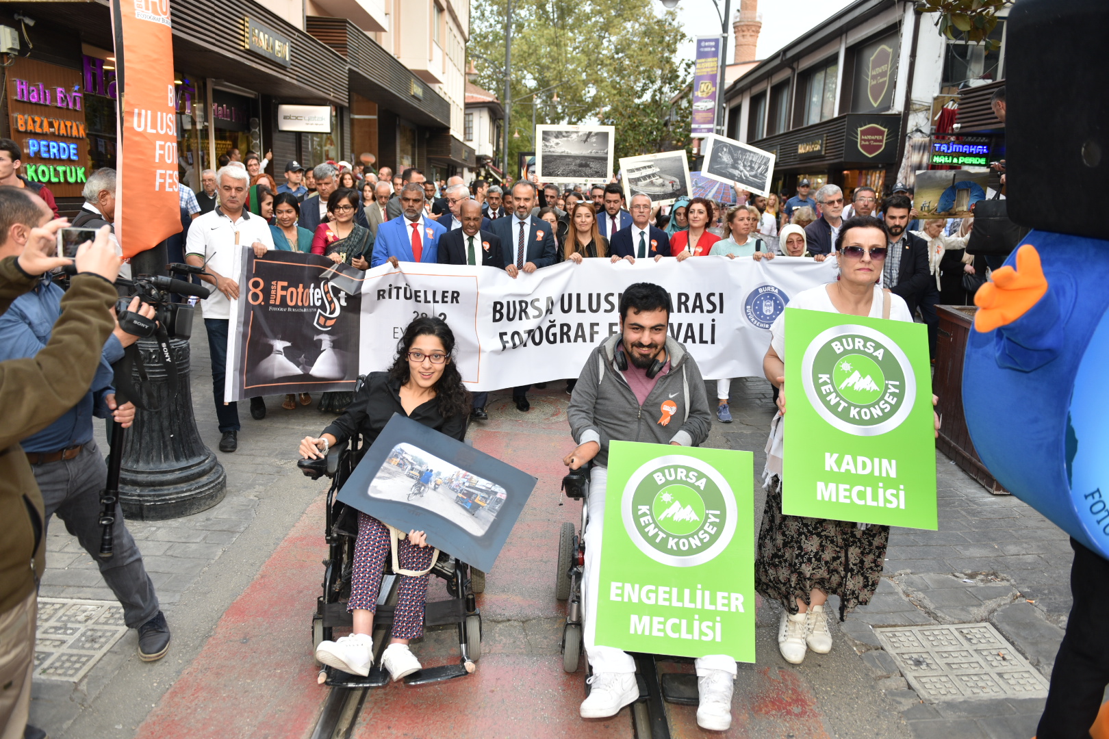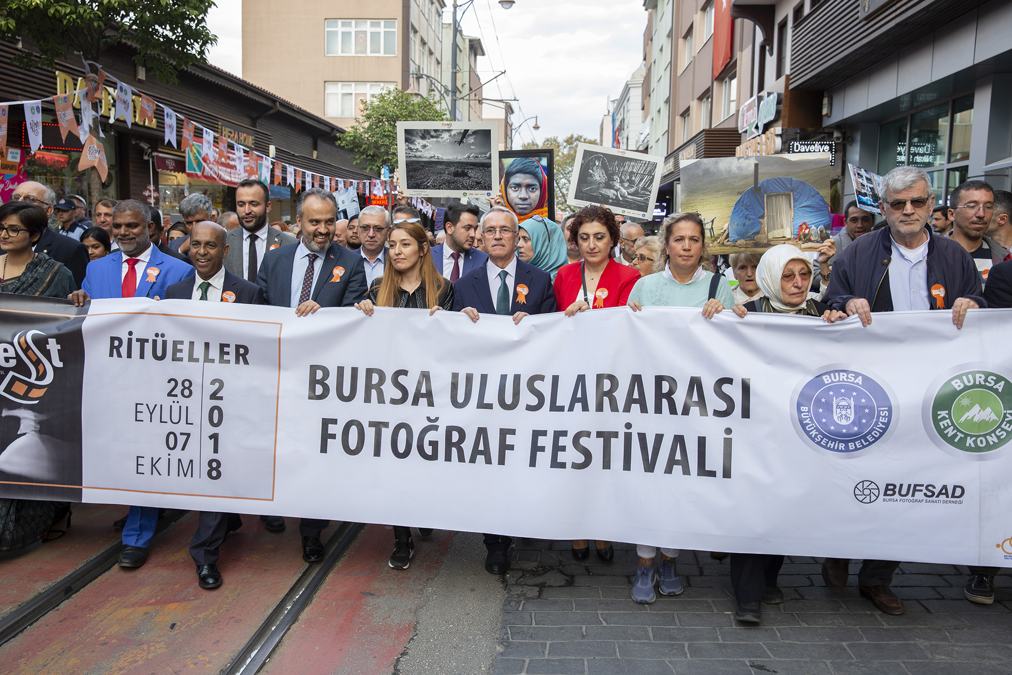Dünyanın sayılı fotoğraf festivalleri arasında gösterilen ve 8’inci yılında ‘Ritüeller’ temasıyla Bursalılarla buluşan BursaFotoFest’in geleneksel kortej yürüyüşü Cumhuriyet Caddesi ile Zafer Plaza arasında yapıldı. Yürüyüşe Büyükşehir Belediye Başkanı Alinur Aktaş, Bursa Kent Konseyi Başkanvekili Şuayip Toprak, BUFSAD Başkanı Serpil Savaş ile yerli ve yabancı fotoğraf meraklıları katıldı. Mehter Takımının marşları eşliğinde yapılan kontej yürüyüşü, renkli görüntülere sahne oldu. Bir taraftan kortej içinde yer alıp, yürüyen fotoğrafçılar aynı zamanda kortejin en güzel görüntülerini yakalayabilmek için de sık sık deklanşöre bastı.