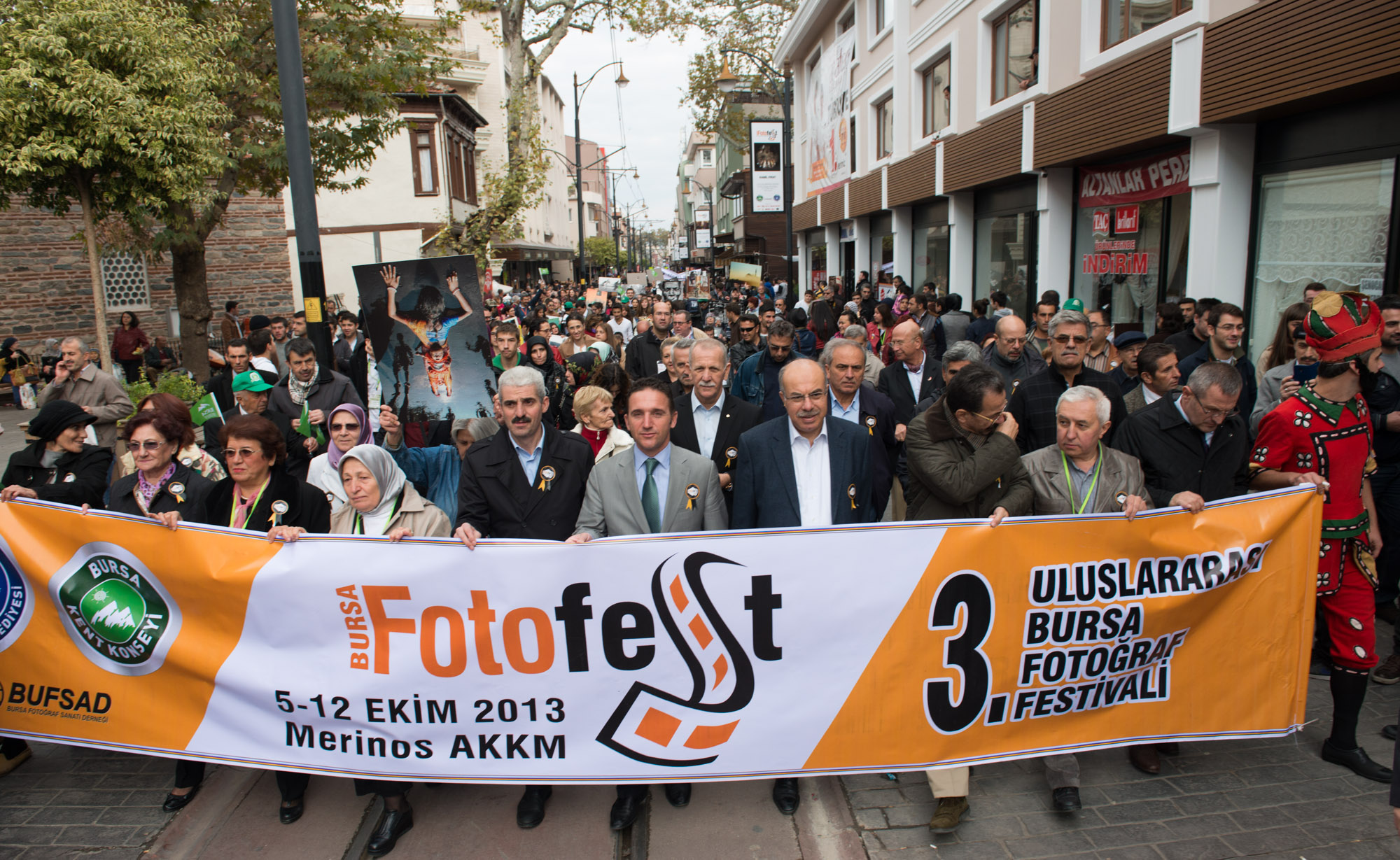 Büyükşehir Belediyesi, Bursa Kent Konseyi (BKK) ve Bursa Fotoğraf Sanatı Derneği (BUFSAD) işbirliğiyle hayata geçirilen ‘3. Uluslararası Bursa Fotoğraf Festivali’ (FotoFest), Cumhuriyet Caddesi İnönü Kavşağı’ndan Zafer Plaza önündeki Zafer Meydanı’na kadar uzanan kortejde renkli görüntülere imza attı. Büyükşehir Belediyesi Bandosu ve tarihi Bursa Mehter Takımı’nın konserleriyle katılımcılara eğlenceli anlar yaşatan festival, Hacivat ile Karagöz ve tahtabacak gösterileriyle daha da eğlenceli bir görünüme kavuştu.