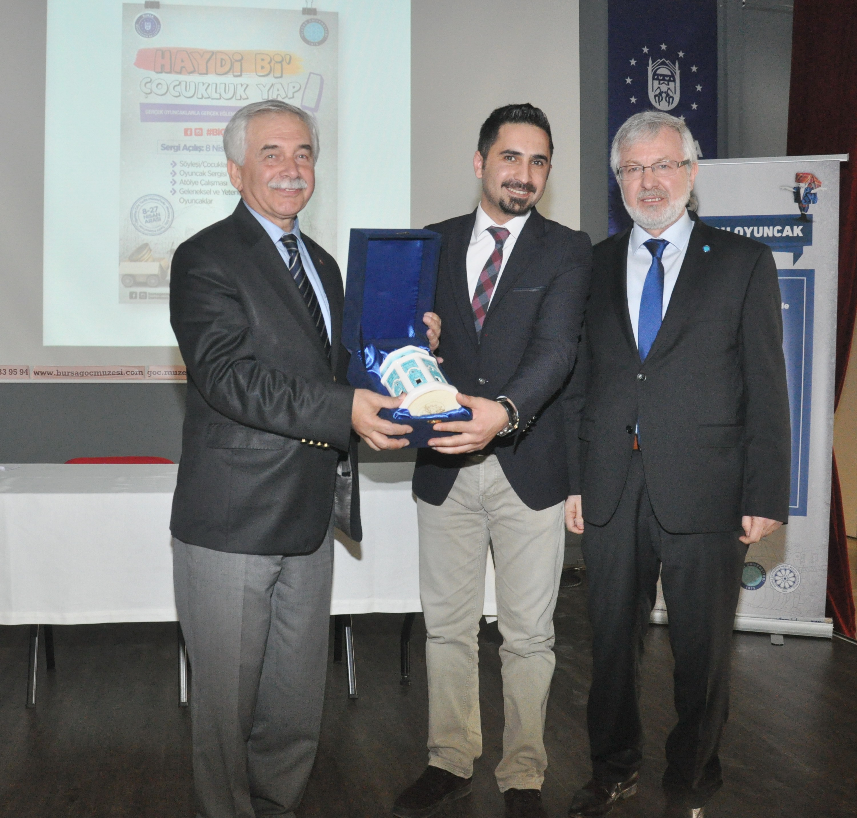 Konuşmaların ardından Başkanvekili Özlükurt tarafından Öğr. Gör. Uzm. Emre Bozdemir’e katkılarından ötürü hediye takdim edildi. Ardından öğrenciler hazırlanan oyuncak sergisini gezdi.