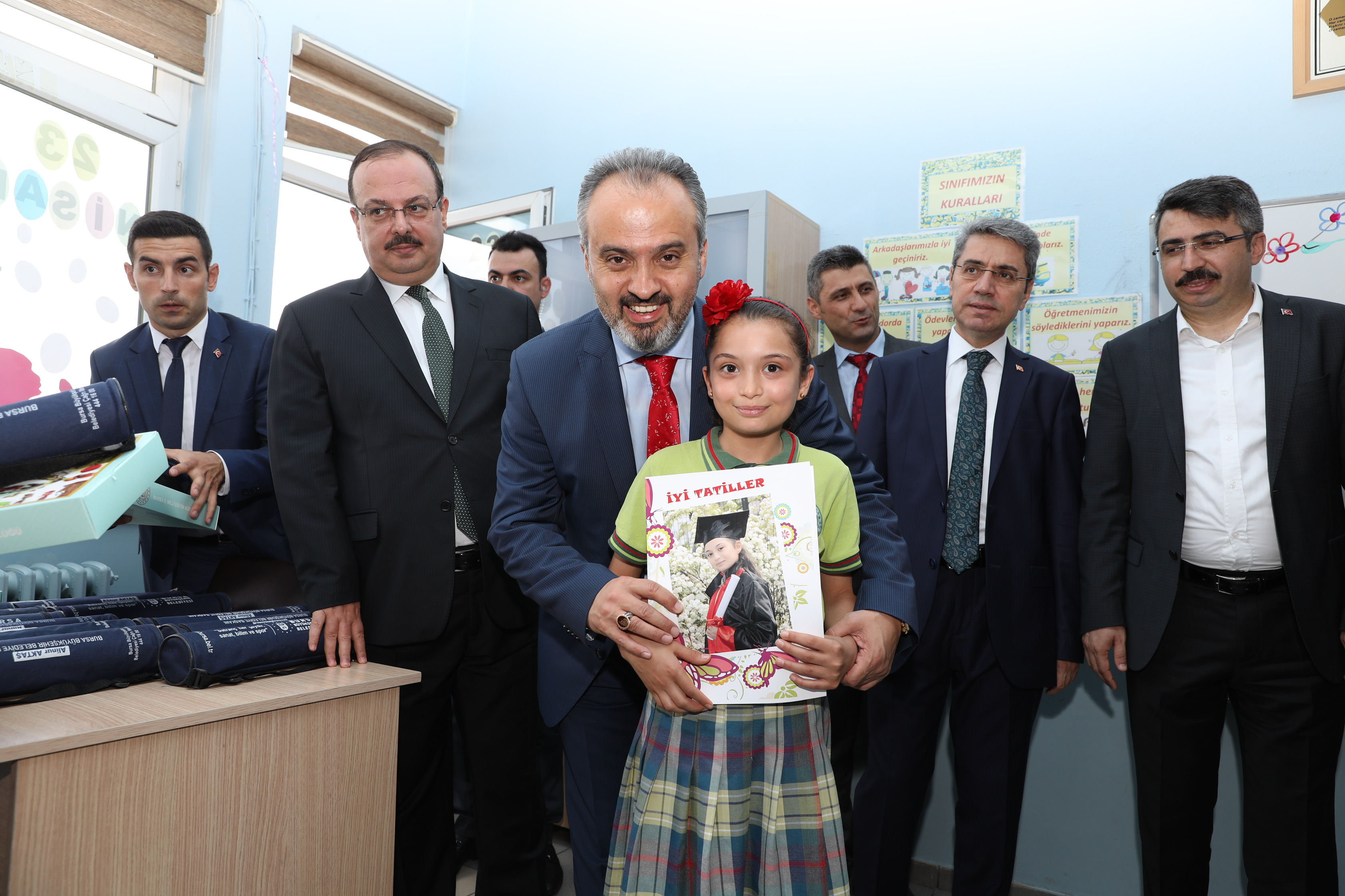 Bursa’da 2018-2019 eğitim öğretim yılı karnelerin dağıtılmasıyla sona erdi. Bursa’da yaklaşık 570 bin öğrenci ve 32 bin öğretmen karnelerin dağıtılmasıyla yaklaşık 3 ay sürecek tatile çıkmış oldu. Eğitim döneminin son gününde Mustafa Dörtçelik İlkokulu’nda öğrencilerin karne sevincine Bursa Valisi Yakup Canbolat, Büyükşehir Belediye Başkanı Alinur Aktaş, Yıldırım Belediye Başkanı Oktay Yılmaz, İl Milli Eğitim Müdürü Sabahattin Dülger ve Yıldırım Kaymakamı Adem Yazıcı da ortak oldu. Vali Canbolat ve protokol üyeleri, karne ve hediyelerini dağıttıkları öğrencilere tatili verimli bir şekilde geçirmeleri temennisinde bulundu.