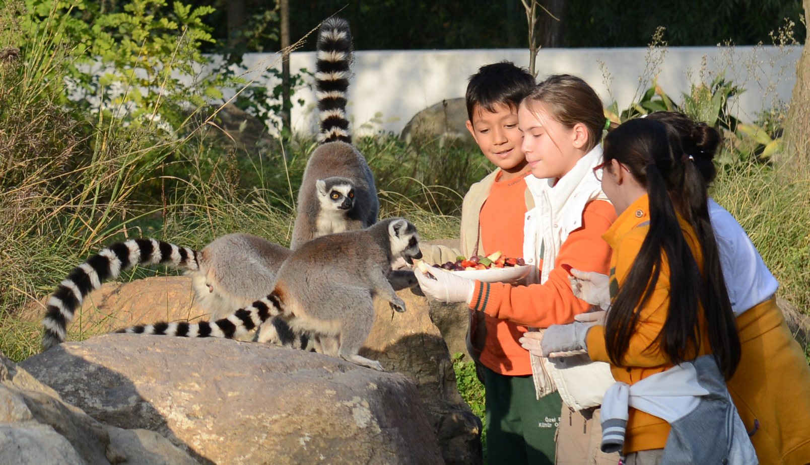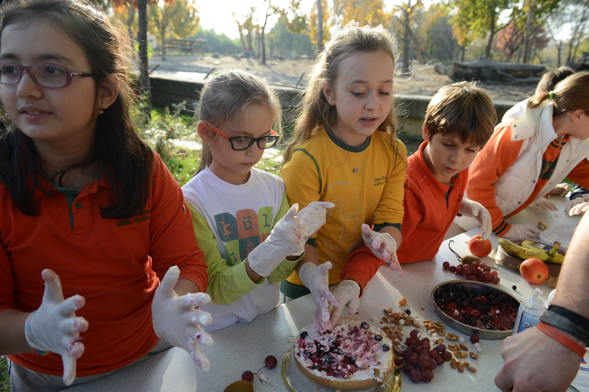 Konferansın ardından Kültür Okulları öğrencileri, kendi elleriyle yaş pasta yaparak maymunların bulunduğu platforma bıraktı. Öğrencilerin pastaları yerleştirmesinin ardından bulundukları kafesten açığa bırakılan maymunlar, renkli görüntüler oluşturdu. Daha sonra lemur, aslan ve pelikanların bulunduğu alana geçen öğrenciler, yapılan beslemeleri büyük bir dikkatle takip etti. Öğrencilerin hayvanat bahçesindeki serüveni, yapılan fayton gezisiyle son buldu.