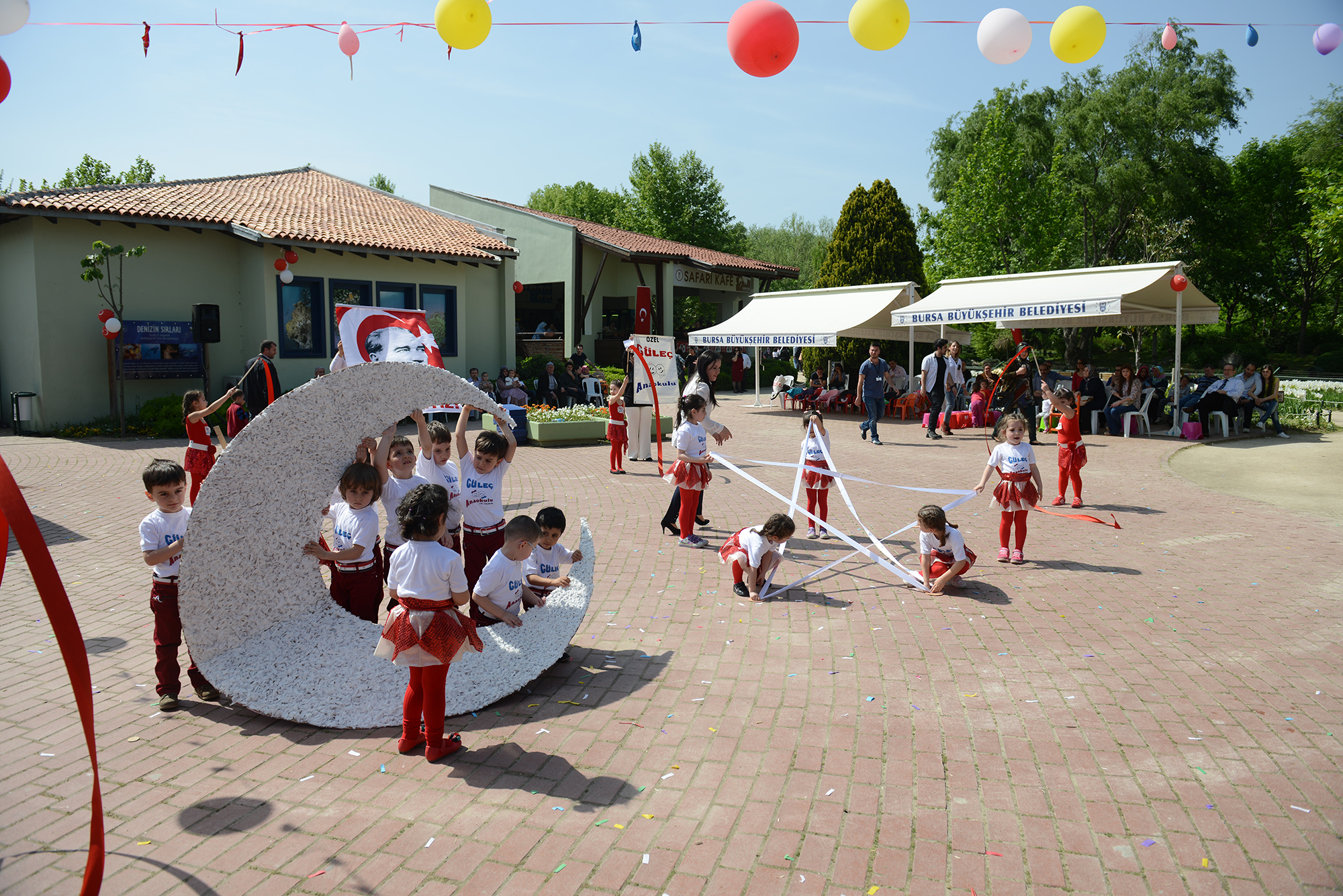 BURSA – Bursa Büyükşehir Belediyesi Hayvanat Bahçesi’nde gerçekleştirilen ‘23 Nisan Ulusal Egemenlik ve Çocuk Bayramı’ kutlaması, renkli ve coşkulu anlara sahne oldu.