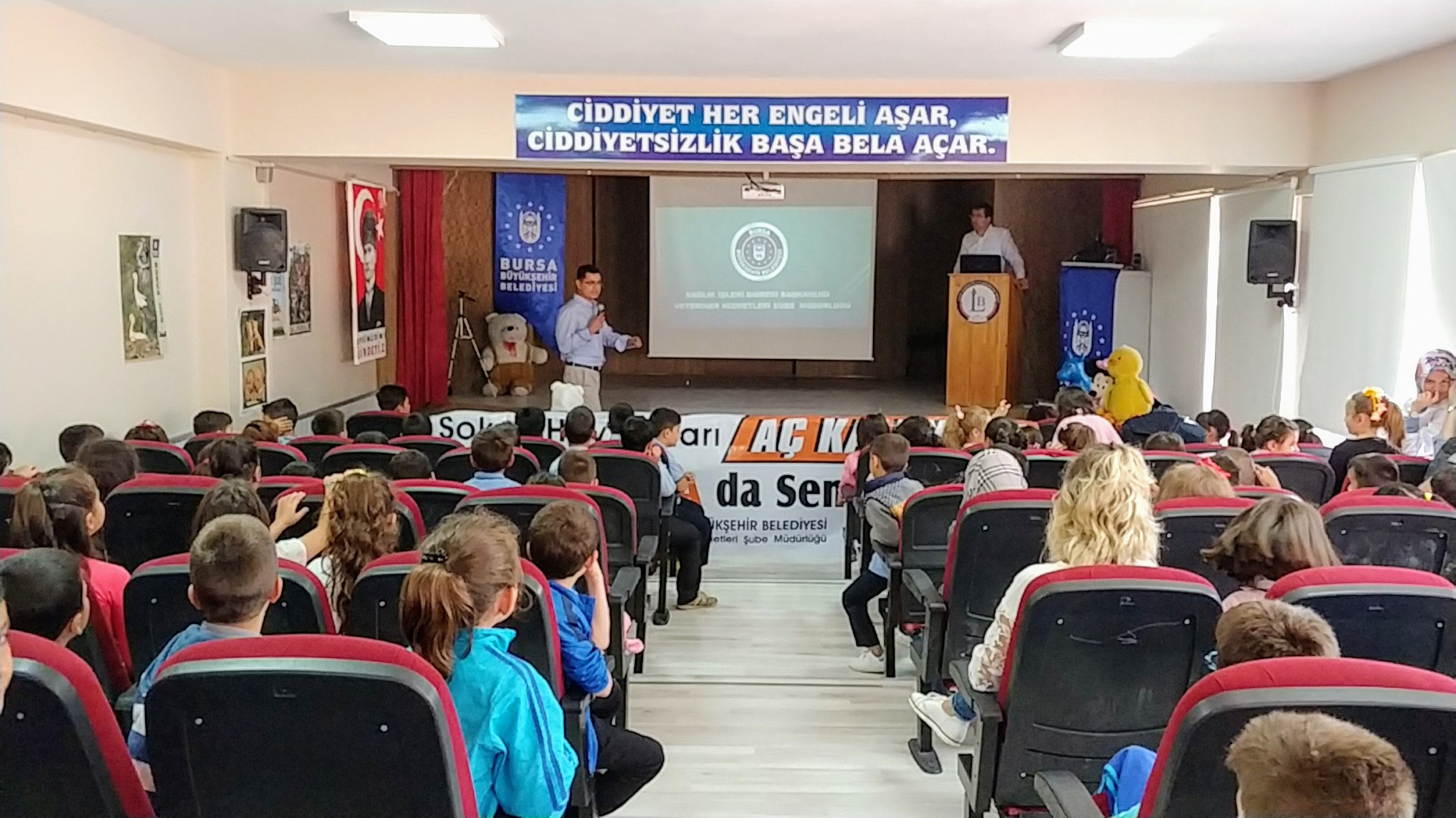 BURSA - Büyükşehir Belediyesi Sağlık İşleri Dairesi Başkanlığı Veteriner Hizmetleri Şube Müdürlüğü, ‘4 Ekim Dünya Hayvanları Koruma Günü’ etkinlikleri kapsamında, çocuklara hayvan sevgisi aşılanması okullarda farklı etkinliklere imza atıyor.