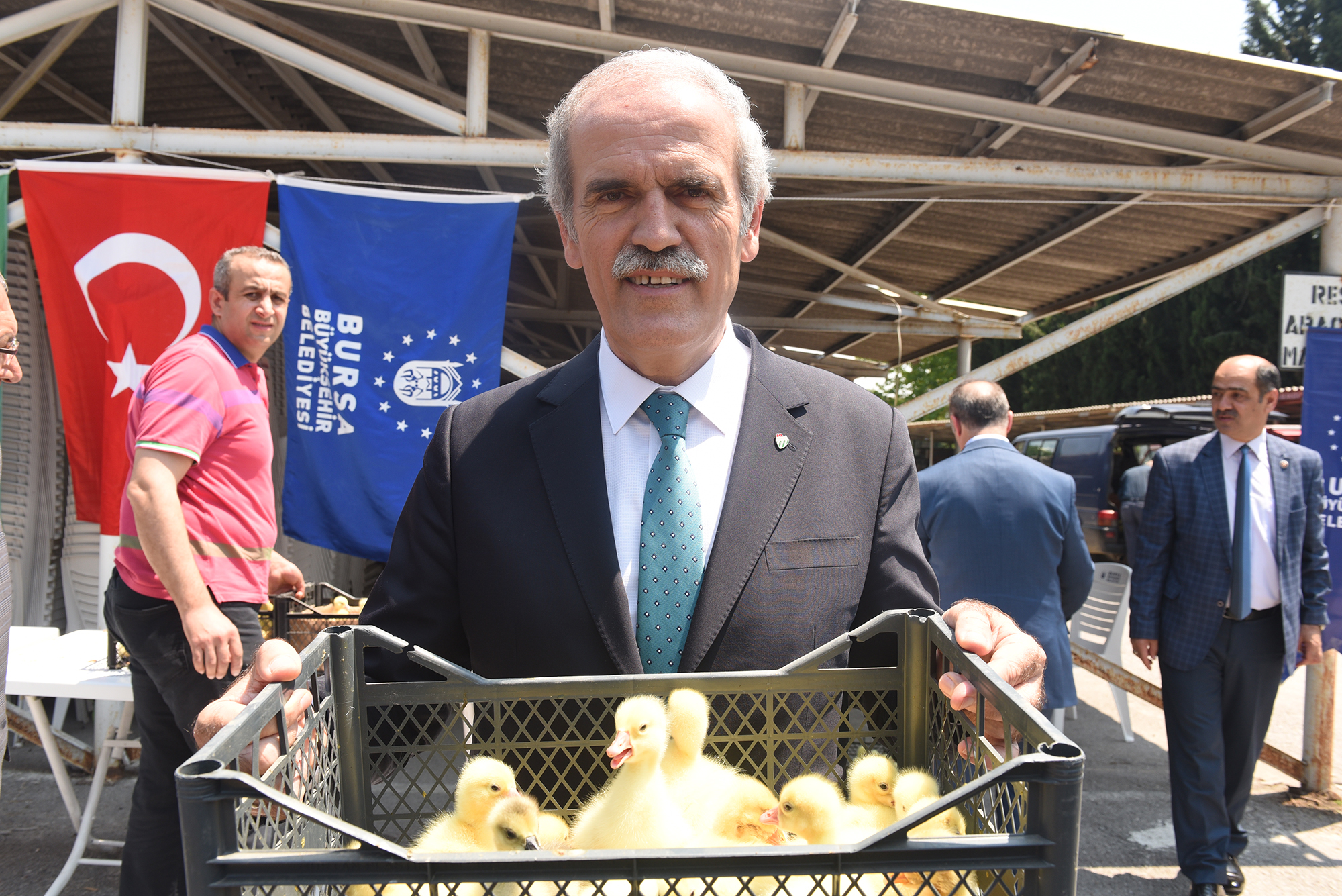Proje kapsamında belirlenen çiftçilere kaz civcivlerini dağıtan Büyükşehir Belediye Başkanı Recep Altepe, kurdukları Kırsal Hizmetler Daire Başkanlığı ve Tarım şirketi sayesinde kırsal alanda da yeni bir dönem yaşandığını söyledi. Artık tarlalara giden yollardan sulama göletlerine, kaliteli üretimden pazarlamaya kadar her alanda çiftçinin yanında olduklarını dile getiren Başkan Altepe, çiftçinin ufkunu açarak, üretimi çeşitlendirme noktasında da önemli adımlar attıklarını söyledi. Hayvancılığın da gelişmesi adına daha önce koyun ve yem destekleri ve buzağı kulübesi dağıtımı yaptık. Büyükorhan’a etçi ırk damızlık sığır merkezini açtık. Sürekli çiftçimizin gelirlerini nasıl artırırız diye araştırma içindeyiz. Şimdi de kaz üreticisinin desteklenmesi amacıyla 1 aylık civcivleri dağıtıyoruz. Bu aynı zamanda yeni üretim alanlarının oluşturulması bakımından bizim için önemli bir sosyal sorumluluk projesi. Çiftçimize hayırlı olsun” diye konuştu.
