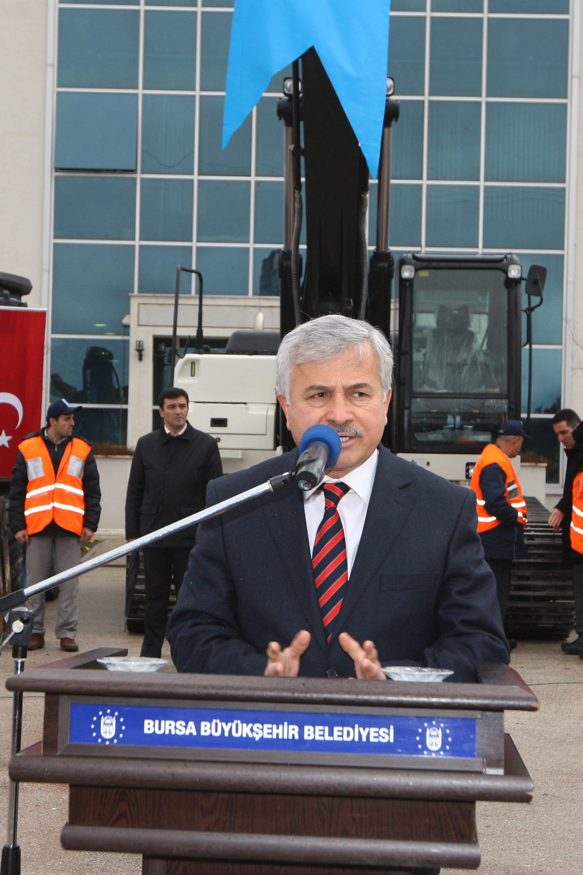 Temsili olarak kurdele kesiminin ardından Büyükşehir Belediye Başkanı Recep Altepe, iş makinelerinden birinin testini yaptı. Başkan Altepe, daha sonra BUSKİ yöneticileri ve personeliyle hatıra fotoğrafı çektirdi.