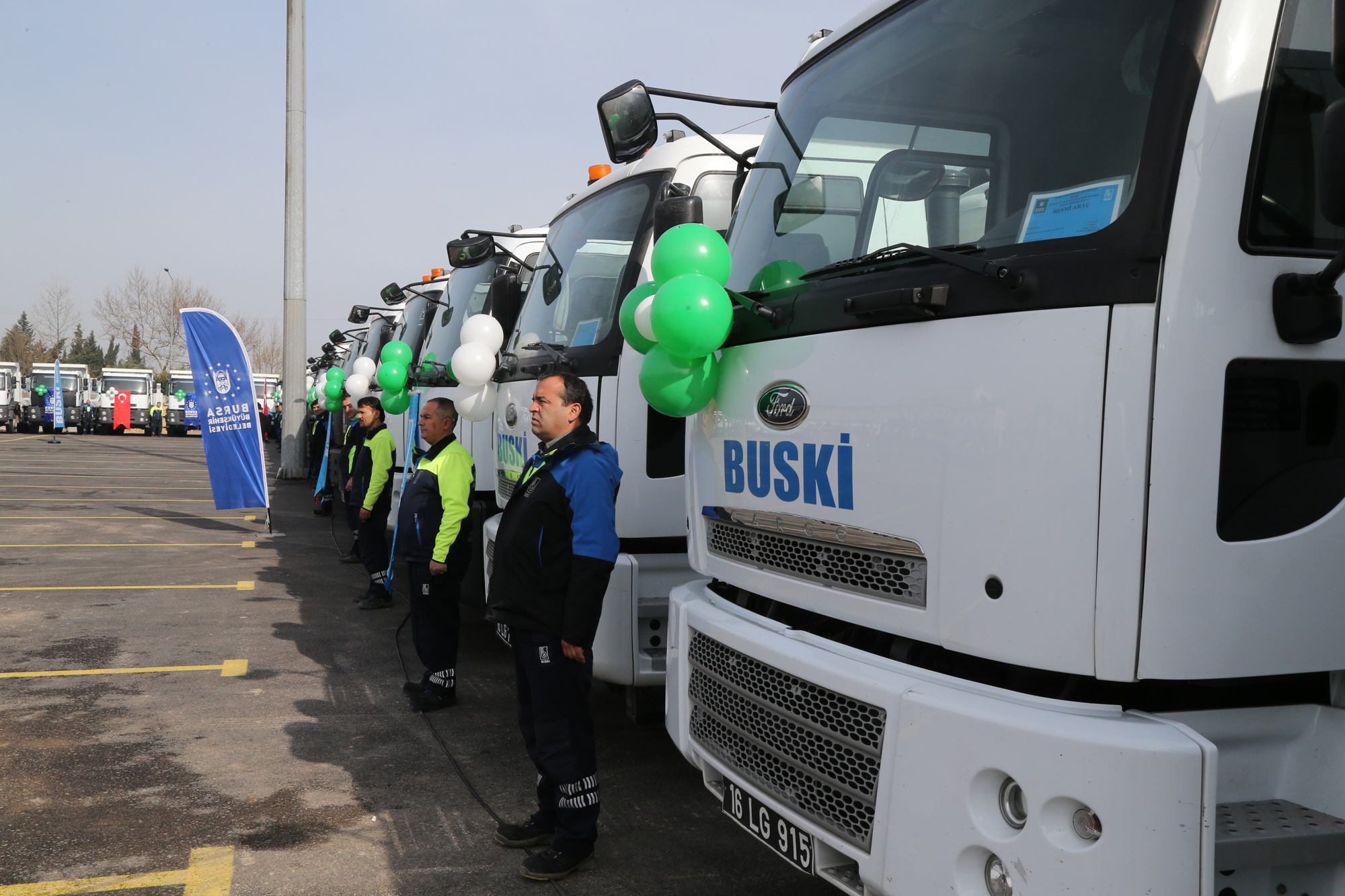 - BURSA BÜYÜKŞEHİR BELEDİYESİ BUSKİ GENEL MÜDÜRLÜĞÜ, HİZMET ALANININ 11 BİN KİLOMETREKAREYE ÇIKMASIYLA BİRLİKTE ARAÇ FİLOSUNA YAPTIĞI TAKVİYELERE 61 YENİ ARAÇ VE İŞ MAKİNESİNİ DAHA EKLEDİ.