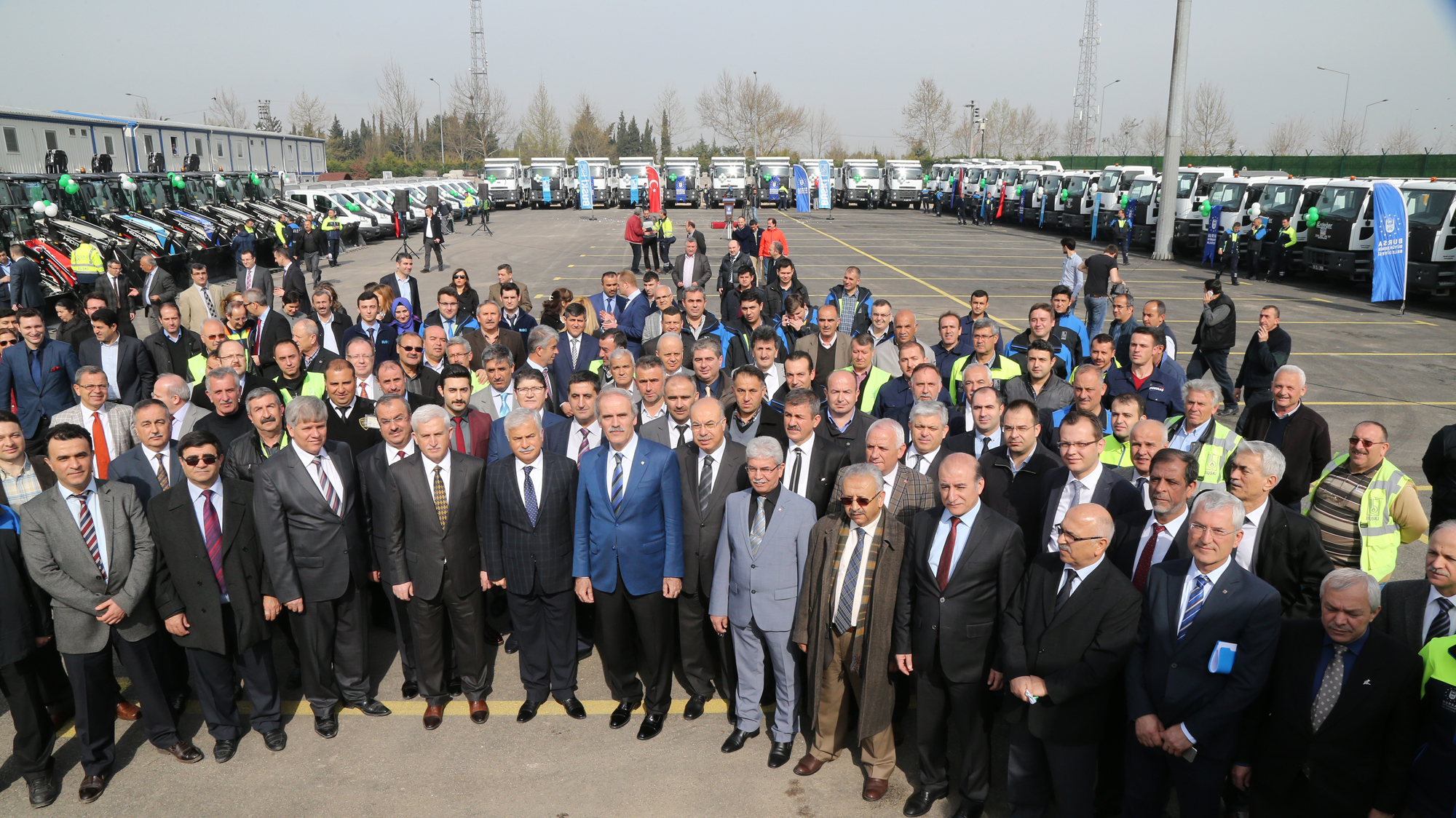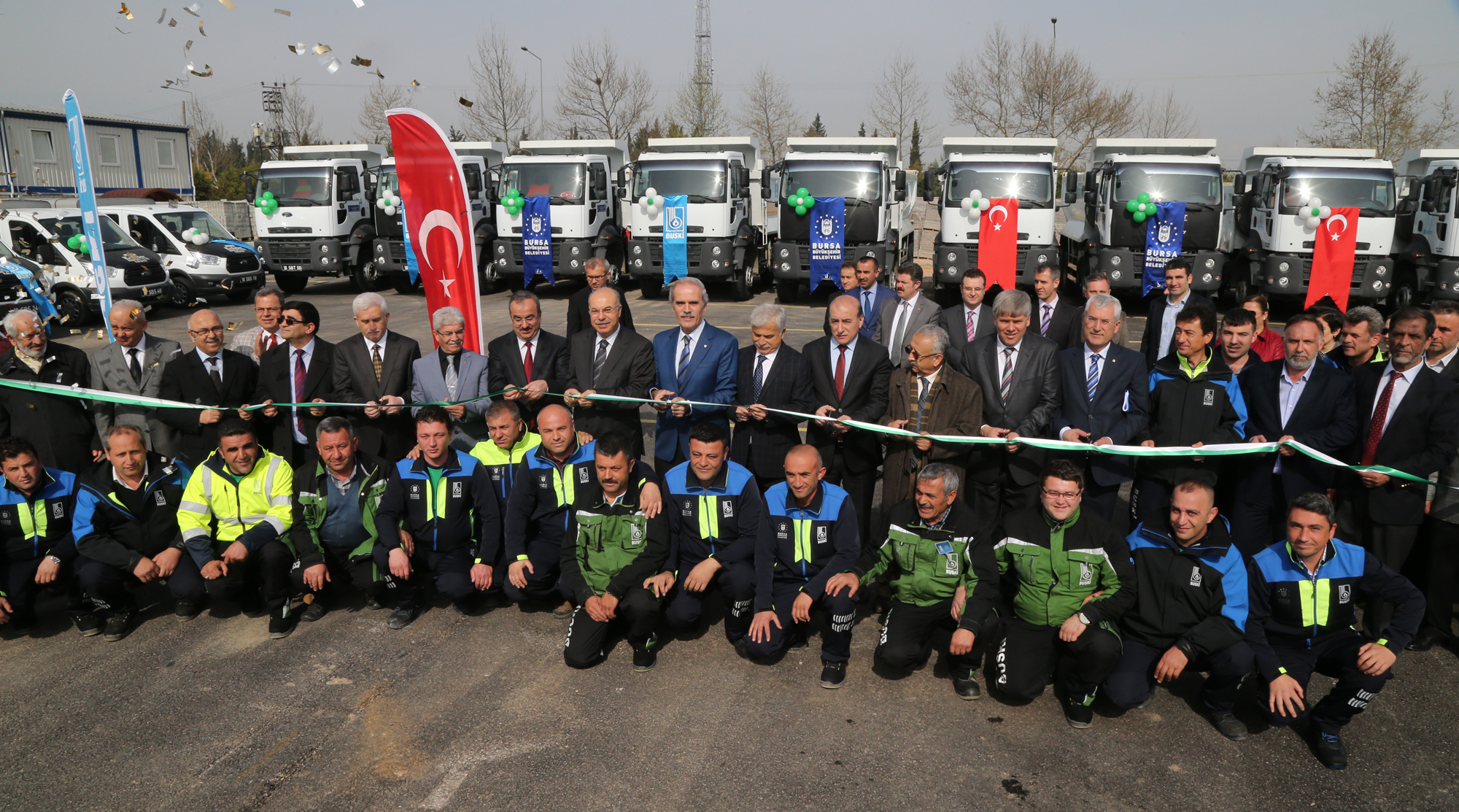 Bursa’yı geleceğe taşıyacak projeleri bir bir hayata geçirirken, hizmet ağına yeni eklenen tüm ilçelerde de alt yapı başta olmak üzere her alanda önemli yatırımları başlatan Büyükşehir Belediyesi, hizmette aksamanın yaşanmaması için tüm ilçelerdeki şantiyeleri yeni ekipman ve iş makineleri ile donatıyor. Bursa ilk Büyükşehir olduğunda 256 kilometrekare olan hizmet alanı Bütünşehir uygulamasıyla birlikte yaklaşık 50 kat artıp, 11 bin kilometrekareye çıkarken, tüm yerleşim birimlerine sağlıklı içme suyu ve altyapı hizmeti ulaştırmayı hedefleyen BUSKİ Genel Müdürlüğü de araç filosuna 61 yeni hizmet aracı ekledi. BUSKİ’nin Acemler’deki makine parkında yeni alınan araçların hizmete açılması için düzenlenen törene katılan Büyükşehir Belediye Başkanı Recep Altepe, hizmette zaman kaybı yaşanmaması için 10 ayrı bölgedeki şantiyelerin sürekli yeni iş makineleri ile donatıldığını vurguladı.