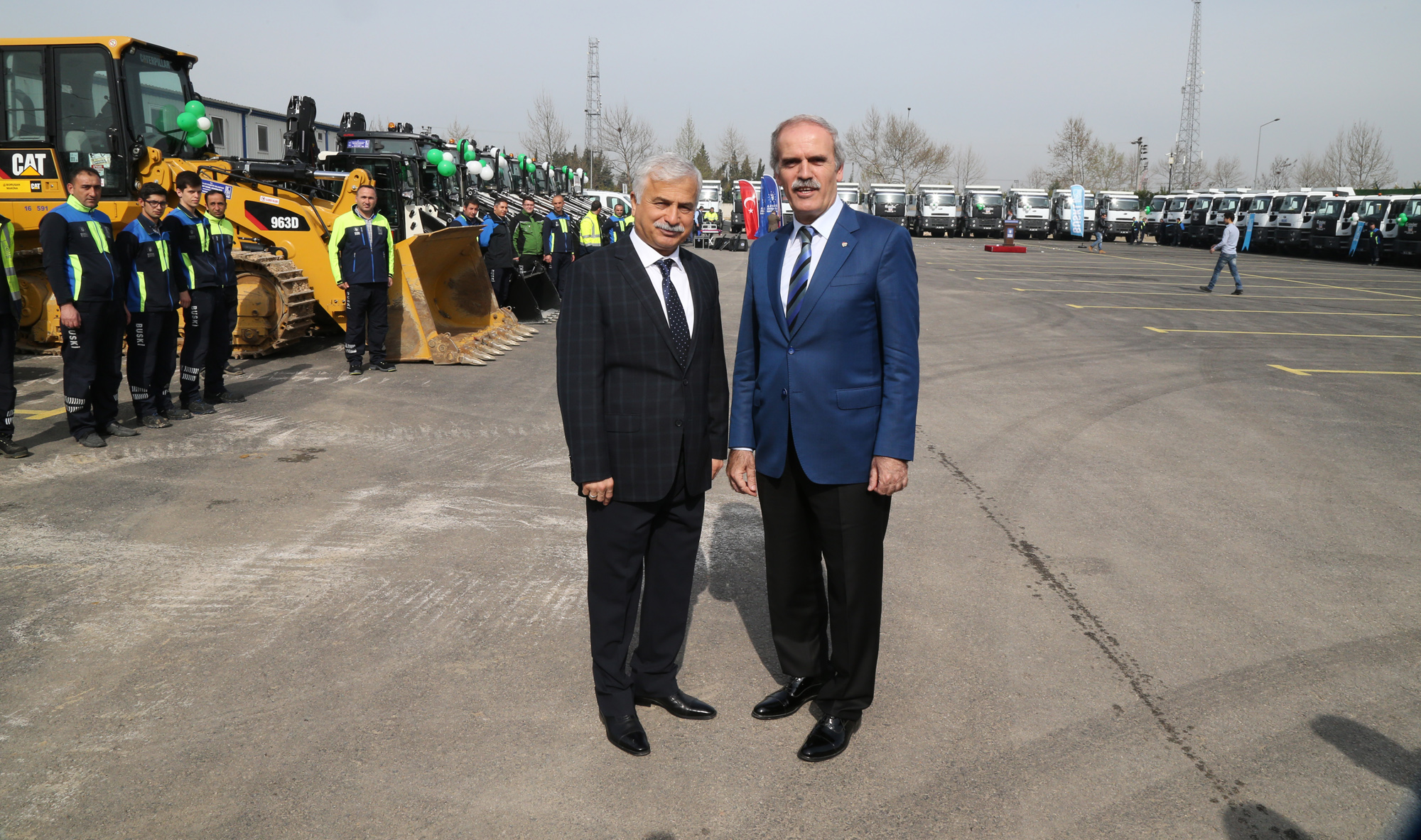 BURSA - Bursa Büyükşehir Belediyesi BUSKİ Genel Müdürlüğü, hizmet alanının 11 bin kilometrekareye çıkmasıyla birlikte araç filosuna yaptığı takviyelere 61 yeni araç ve iş makinesini daha ekledi. Büyükşehir Belediye Başkanı Recep Altepe, 17 ilçede 1070 mahallede kesintisiz hizmet verdiklerini belirterek, artık sadece merkezde değil 10 ayrı bölgede şantiyelerinin bulunduğunu ve bu şantiyelerin her geçen gün yeni araç ve iş makineleriyle donatıldığı söyledi.