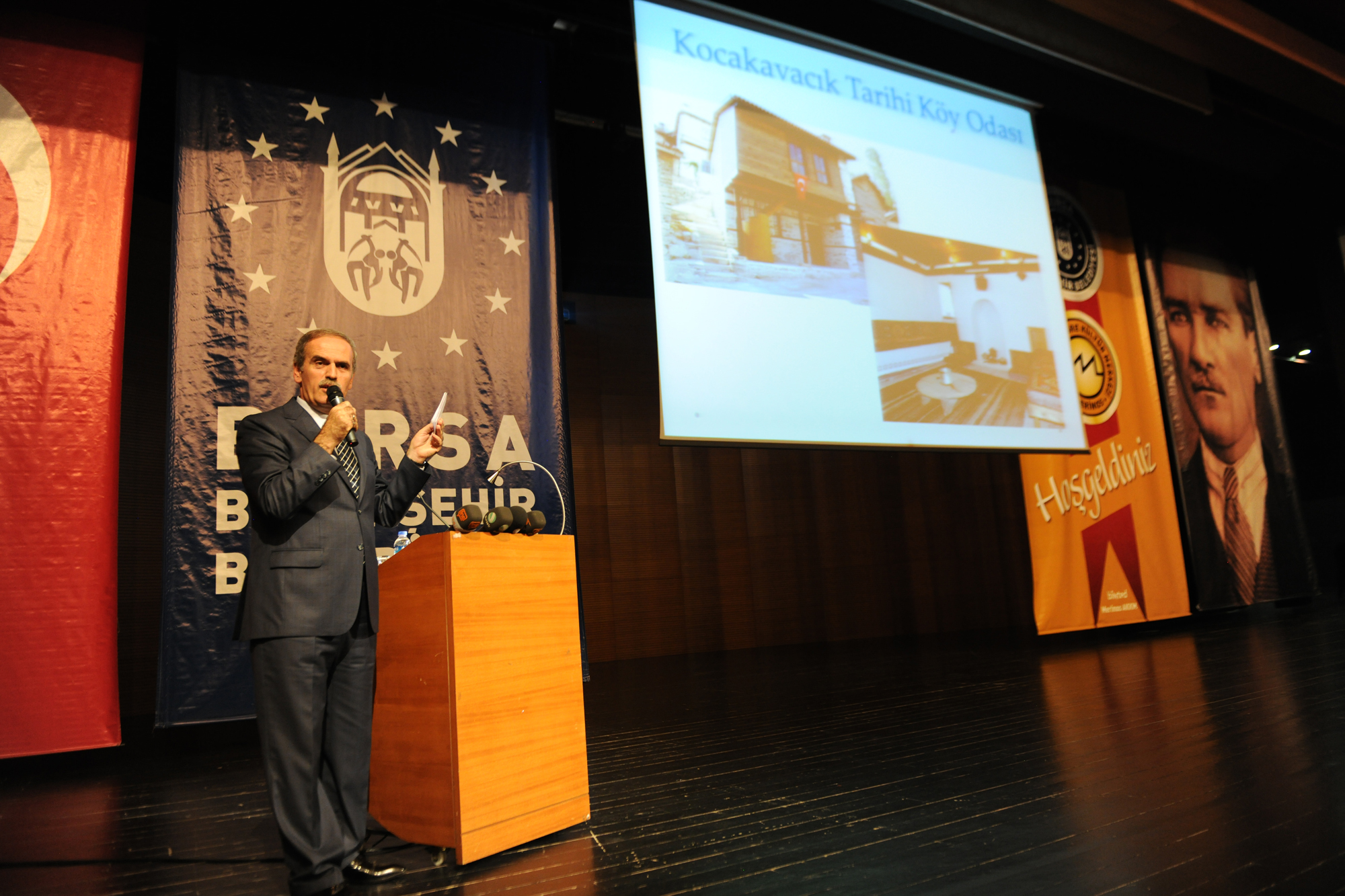 Büyükşehir Belediye Başkanı Recep Altepe, yeni yasayla Büyükşehir’e dahil edilecek olan ilçelerin mahalle ve köy muhtarlarıyla, yeni yasayla ilgili bilgilendirme toplantısında bir araya geldi. Atatürk Kongre Kültür Merkezi (Merinos AKKM) Orhangazi Salonu’nu dolduran yaklaşık 500 muhtar, toplantıda Başkan Altepe’nin sunumunu ilgiyle izledi.