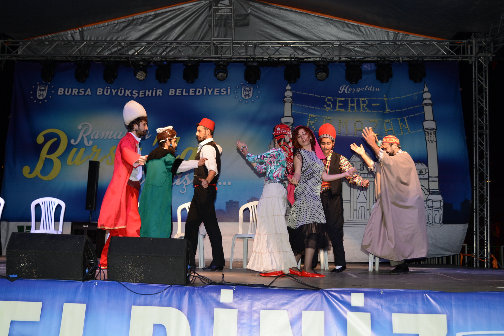 Hüdavendigar Kent Parkı’nı şenlendiren etkinliklerden biri de geleneksel Türk halk tiyatrosu örneklerinden orta oyunuydu. Özellikle çocuklu ailelerin yoğun ilgi gösterdiği programda, orta oyununun yanı sıra, Ramazan ayına has sahne gösterileri de ilgiyle izlendi. Başlarından komik olayların geçtiği Osmanlı dönemindeki karakterleri canlandıran tiyatrocular, seyircileri güldürürken bol bol da alkış aldı. Hüdavendigar Kent Parkı’nda keyifli anlar yaşayan çocuklar, serin havaya rağmen oyuncuları programın sonuna kadar merakla ve heyecanla takip etti.