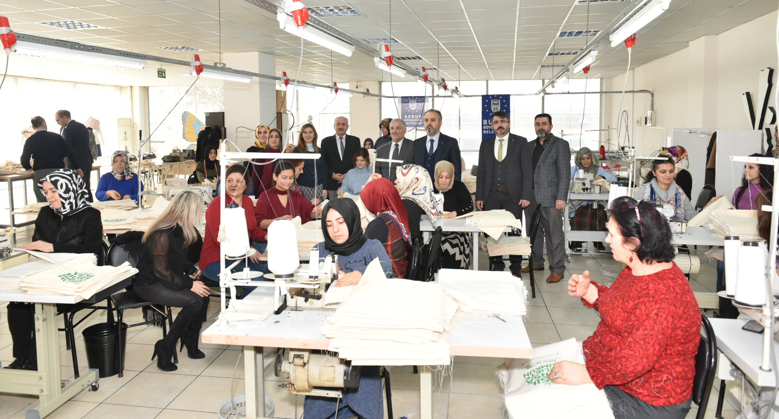 Bursa’nın daha yaşanabilir bir kent olması hedefiyle çalışmalarına yön veren Bursa Büyükşehir Belediye Başkanı Alinur Aktaş, BUSMEK Erikli Kurs Merkezi’ni ziyaret ederek, bez torba üretimi yapan eğitmen ve kursiyerlerle bir araya geldi.