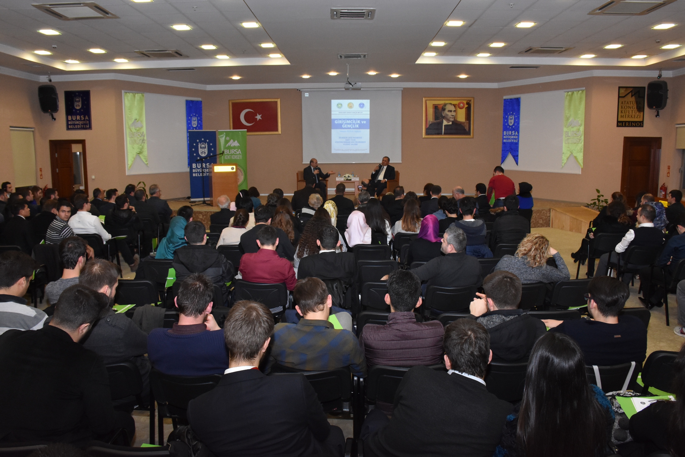 Bursa Kent Konseyi Gençlik Meclisi’nin hazırladığı ‘Girişimcilik ve Gençlik’ konulu söyleşi, Atatürk Kongre Kültür Merkezi (Merinos AKKM) Uludağ Salonu’nda yapıldı. Büyükşehir Belediyesi Yerel Gündem Şube Müdürü Mahmut Turunç, Bursa Kent Konseyi Başkan Yardımcısı Mehmet Mekikçi ile yürütme kurulu ve Gençlik Meclisi üyelerinin katıldığı program, saygı duruşu ve İstiklal Marşı’nın okunmasıyla başladı. Programın moderatörlüğünü üstlenen Bursa Kent Konseyi Başkanı Hasan Çepni, gençlerle buluşan Hüseyin Özdilek’e teşekkür etti. Türkiye’nin yarınları olan gençlerin tecrübeli isimlerle bir araya gelerek onlardan istifade etmeyi arzuladıklarını söyleyen Hasan Çepni, bu projeyi yürütme kurulu olarak desteklediklerini, Hüseyin Özdilek ile iyi bir başlangıç olacağını ifade etti.