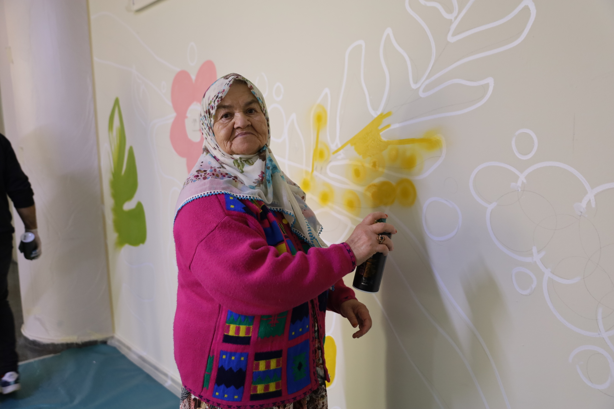 Huzurevi sakinleri duvarları tuvale dönüştürdü