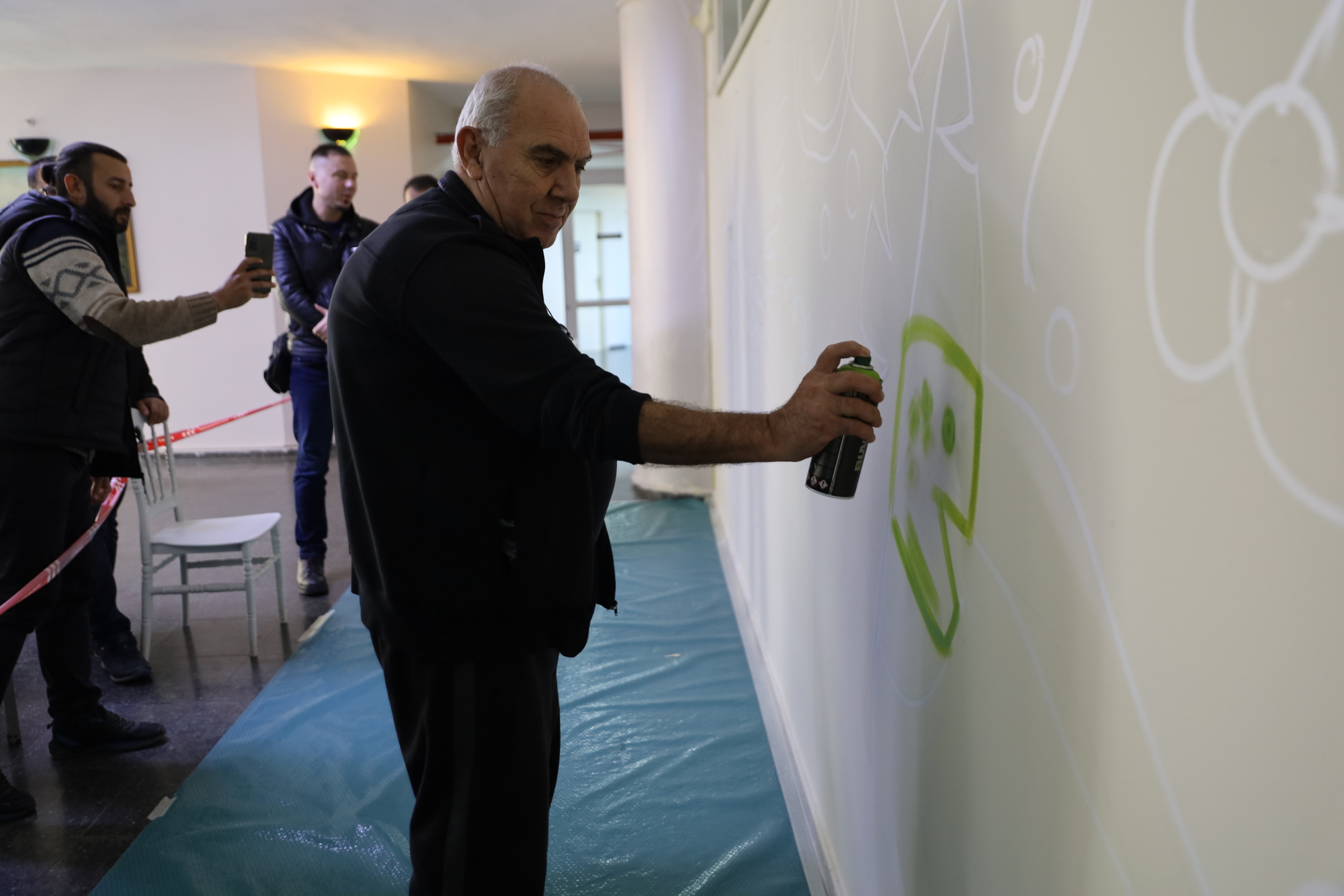 BURSA - Bursa Büyükşehir Belediyesi Huzurevi, renkli bir etkinliğe ev sahipliği yaptı. Kimi grafiti, kimi yağlı boya yapan huzurevi sakinleri, duvarları tuvale dönüştürüp, kendi ortak yaşam alanlara renk kattı.