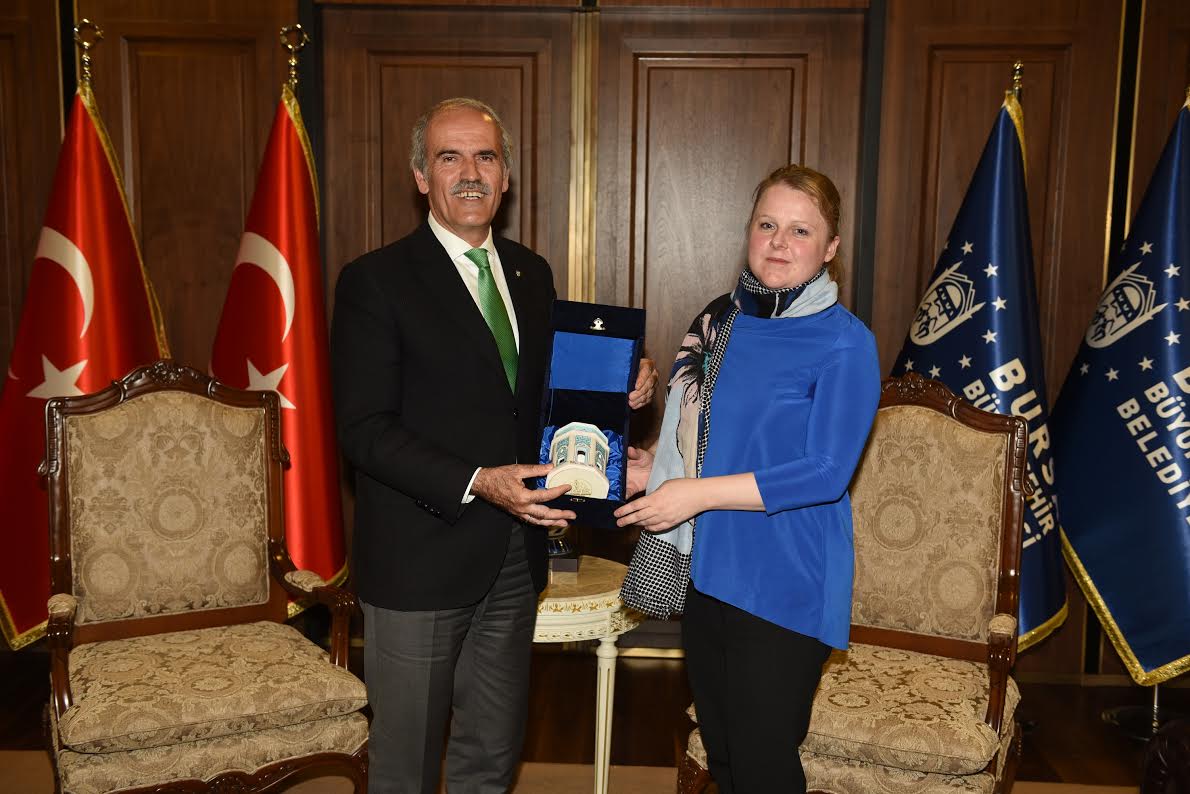 Büyükşehir Belediye Başkanı Recep Altepe’nin huzurevi sakinlerinin ardından diğer konukları da DSÖ Avrupa Sağlıklı Şehirler Ağı Bölge Sorumlusu Monika Kosinska ile Marmara Muhtarlar Federasyonu Başkanı Ferruh Sevimgil ve yönetim kurulu üyeleri oldu. İlk olarak DSÖ Temsilcisi Kosinska’yı ağırlayan ve kurumun Bursa’da gerçekleştirdiği faaliyetler hakkında bilgi sahibi olan Başkan Altepe, Bursa ile Marmara bölgesinde çevre kirliliğine yönelik faaliyetler konusunda misafirini bilgilendirdi. Daha sonra Marmara Muhtarlar Federasyonu üyeleriyle görüşen Başkan Altepe, muhtarların sıkıntılarını dinledi.