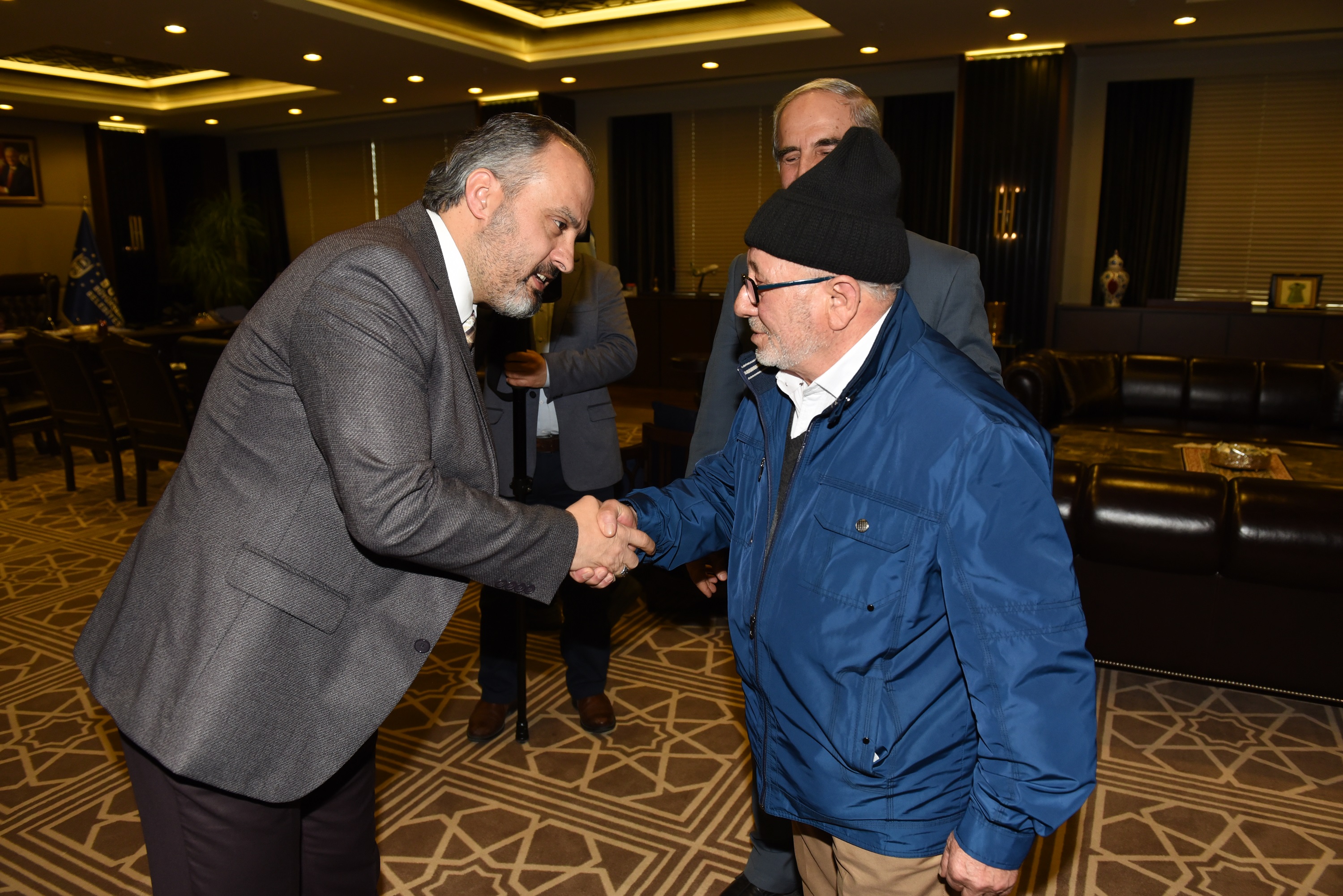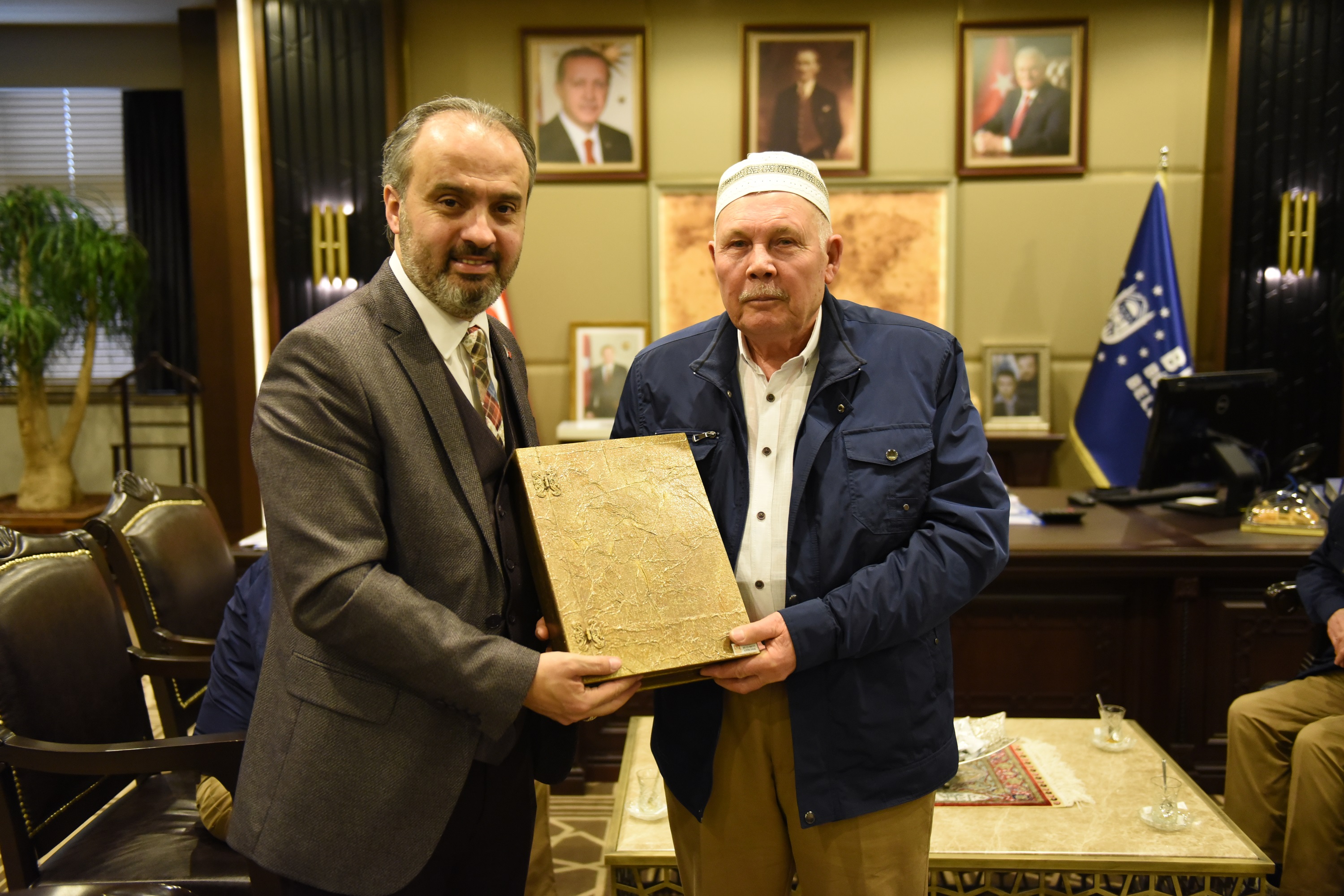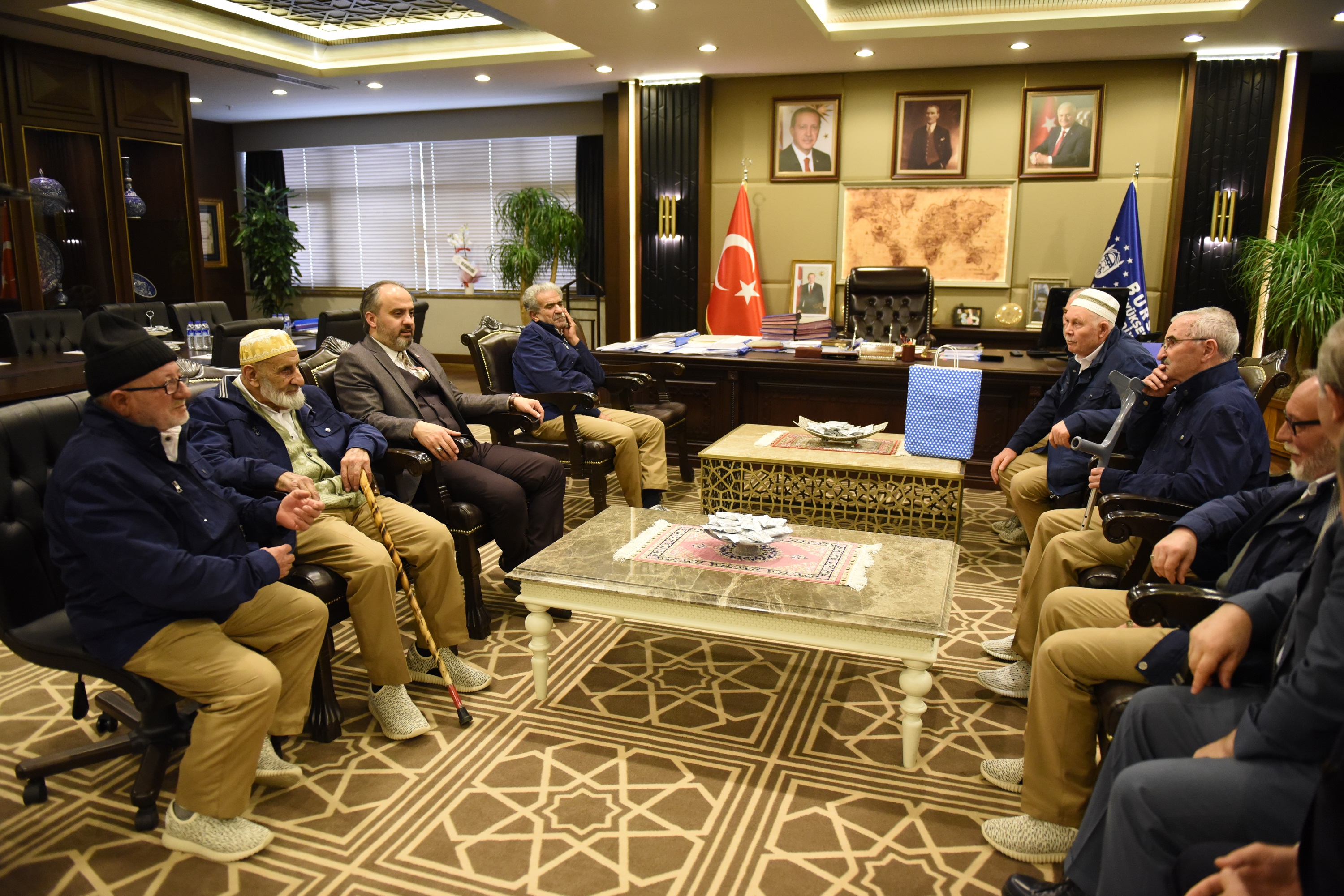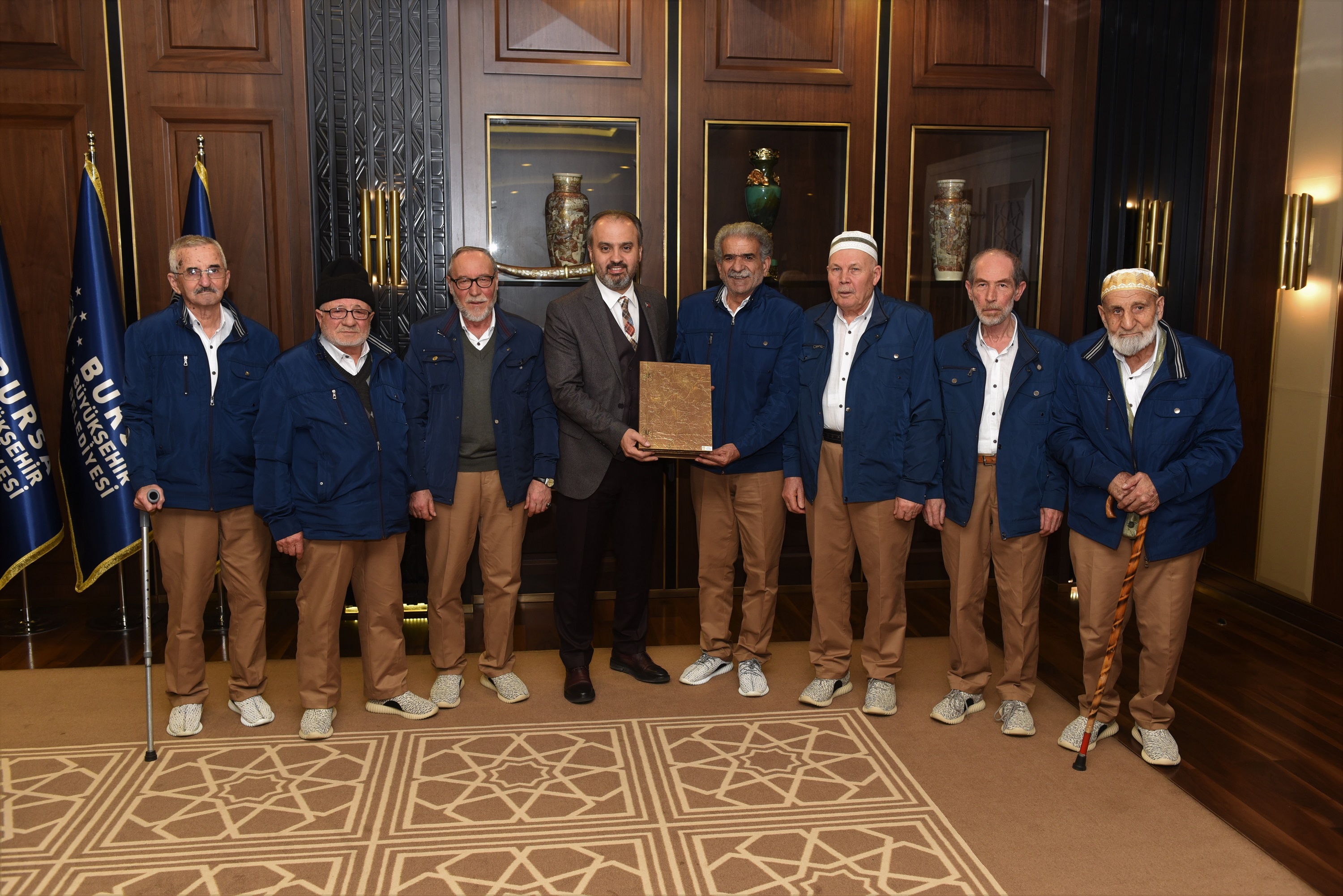 BURSA – Bursa Büyükşehir Belediyesi Huzurevi sakinlerinden 5. heyet, Umre ziyareti için kutsal topraklara gitmeden önce Büyükşehir Belediye Başkanı Alinur Aktaş’ı makamında ziyaret etti.