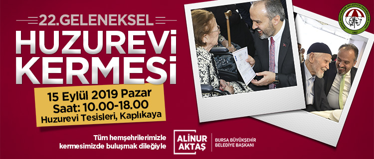 Bursa’da 1996 yılından bu yana geleneksel olarak düzenlenen ‘Huzurevi Kermesi’, Huzurevi sakinlerine moral verecek. Bursa Büyükşehir Belediyesi Sosyal Hizmetler Dairesi Başkanlığı Huzurevi Şube Müdürlüğü yerleşkesinde; anlamlı ve keyifli bir güne imzasını atacak olan kermesin hazırlıkları hızla sürüyor. Huzurevi bahçesi, kermes ziyaretçilerinin stantları rahatça gezebilmeleri ve güzel bir gün geçirebilmeleri için özenle düzenleniyor. Bu yıl 22.’si gerçekleştirilecek olan kermes, Kaplıkaya’da bulunan Büyükşehir Belediyesi Huzurevi yerleşkesinde renkli anlara imza atacak.