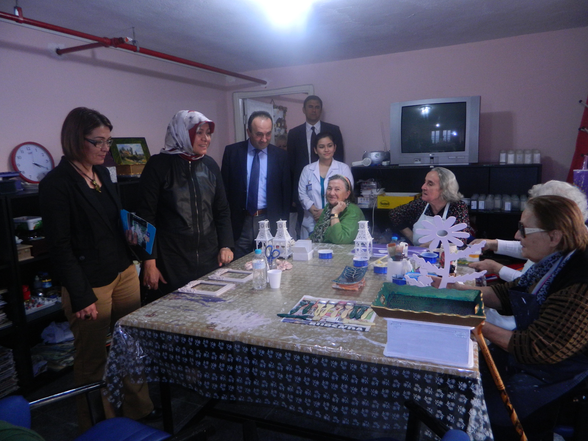 Bursa Valisi Münir Karaloğlu’nun eşi Sevim Karaloğlu ile Arnavutluk’tan Bursa’ya gelen konuklar, Büyükşehir Belediyesi Huzurevi sakinleriyle buluştu. Huzurevi Şube Müdürü Yasemin Şavşatlı’dan çalışmaları hakkında bilgi alan Sevim Karaloğlu, yaşlıları boş zamanlarını değerlendirdikleri atölyelerinde ve odalarında ziyaret etti. Karaloğlu’nun ziyareti nedeniyle çok mutlu olduklarını belirten yaşlılar, konuklarıyla bol bol keyifle sohbet etti. Arnavutluk’tan gelen misafirleri de ilgiyle karşılayan huzurevi sakinleri, keyifli günde moral depoladı. Ortak projeler üzerinde fikir alışverişinin de yapıldığı ziyaretin sonunda huzurevi sakinlerinin sanat atölyelerinde yapmış oldukları el işi ahşap tepsi, konuklara hediye edildi.