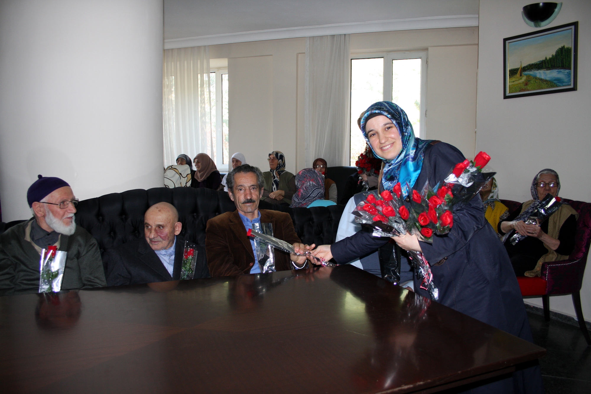 Huzurevini ziyaret ederek anlamlı bir buluşmaya imza atan kursiyerler, yaşlılarla keyifle sohbet etti. Huzurevi sakinlerinin hatrını soran ve sıkıntılarını dinleyen kursiyerler, yaşlılara karanfil ve çeşitli hediyeler armağan etti. Huzurevi sakinleri de ziyaretçileriyle bol bol moral depoladı.